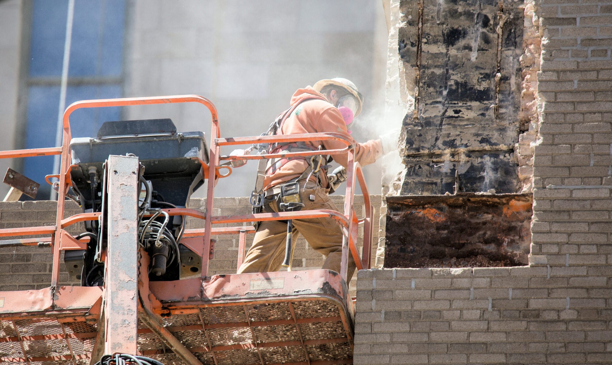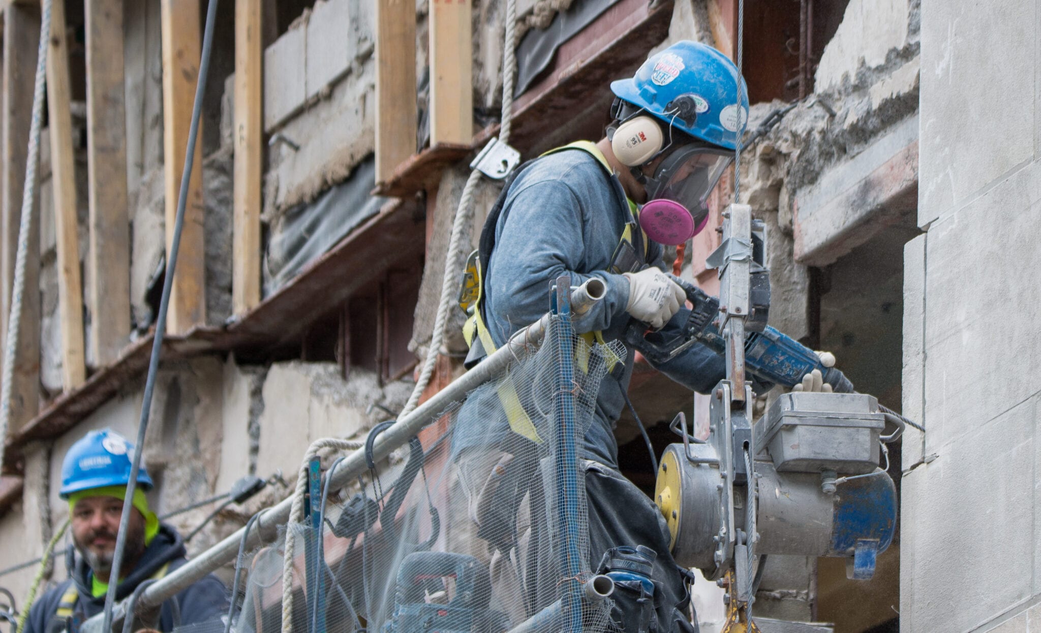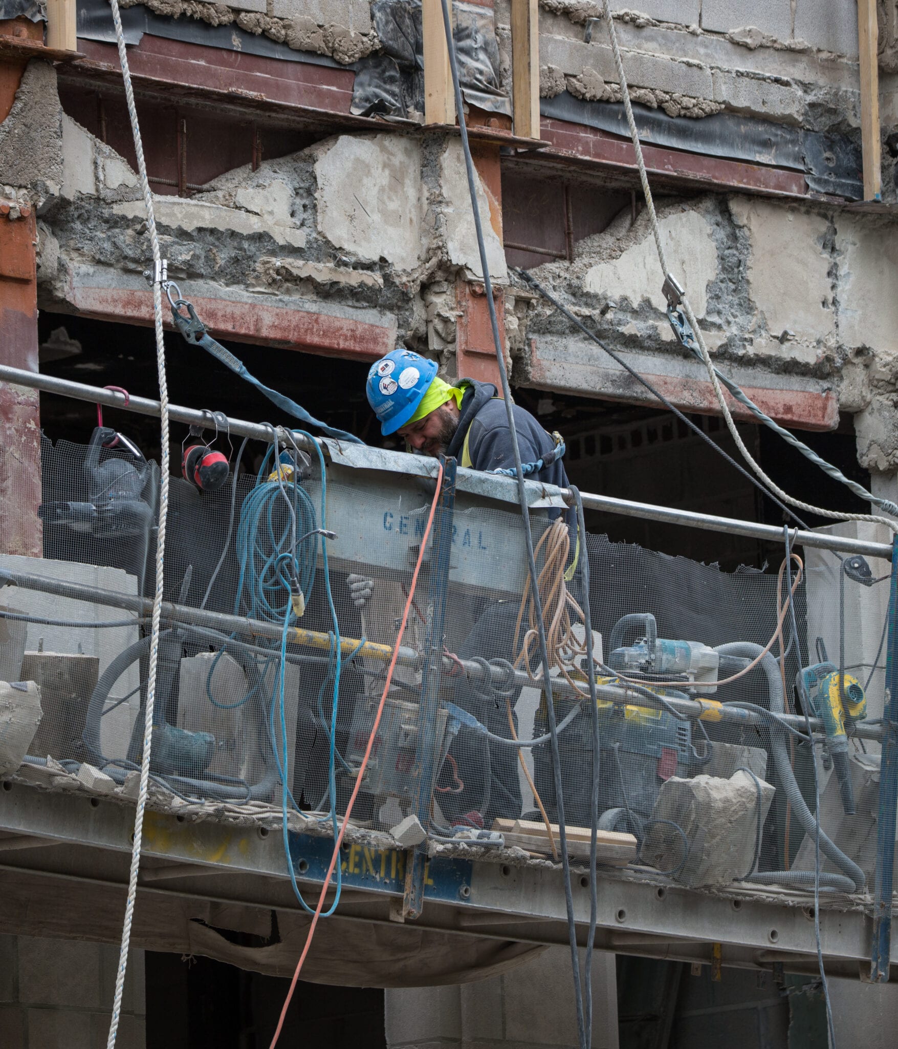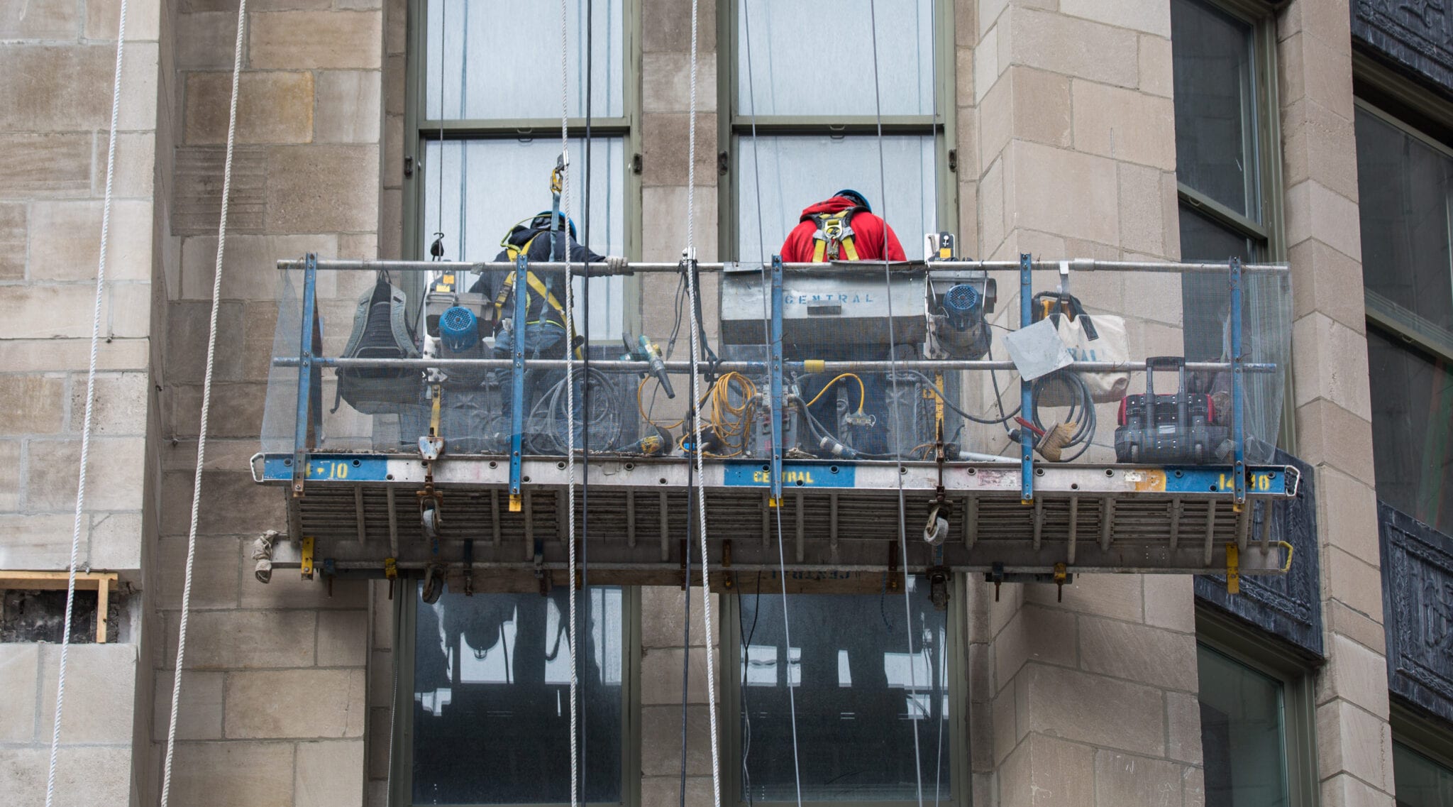 latest photographic images from ongoing restoration of howells and hood’s tribune tower (1925) and partial demolition of jarvis hunt’s printing plant (1929). the majority of the images focus on capturing tradesmen restoring the tower’s bedford limestone from their swing stages hanging off the facade like spiders in a web.