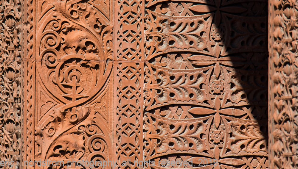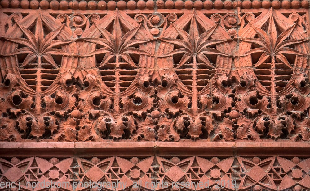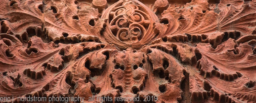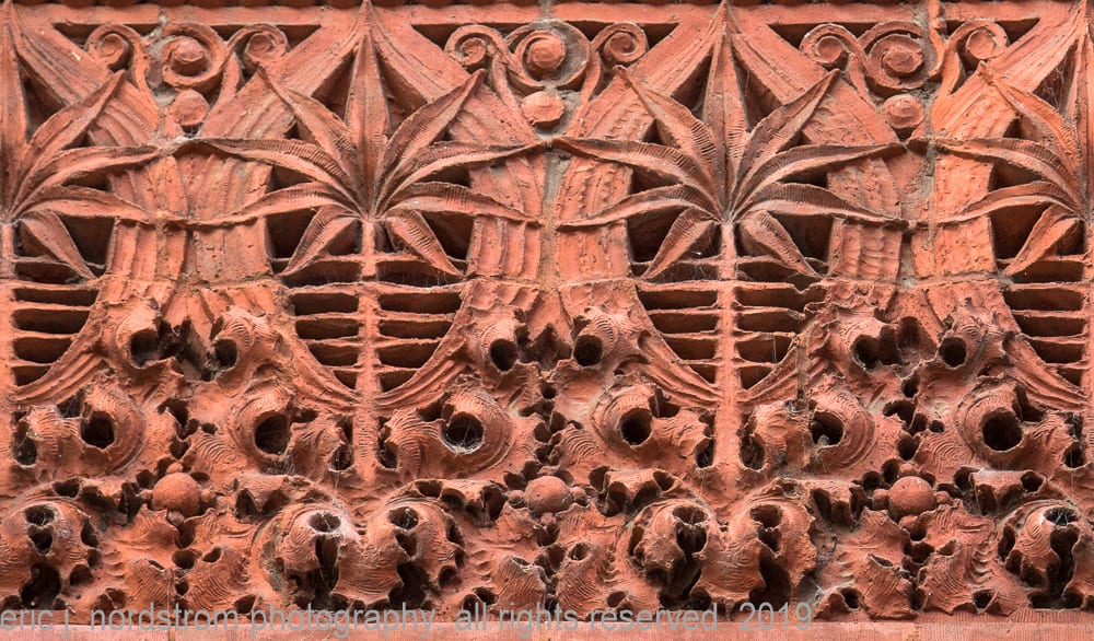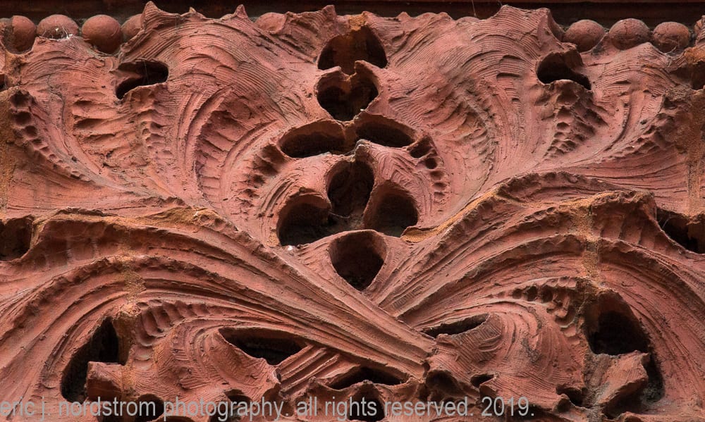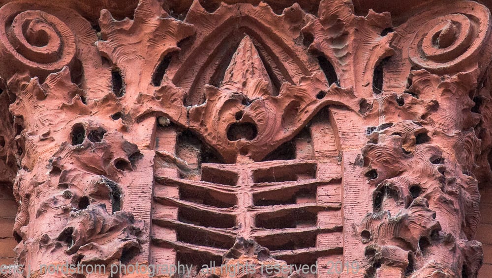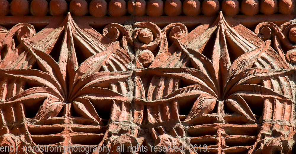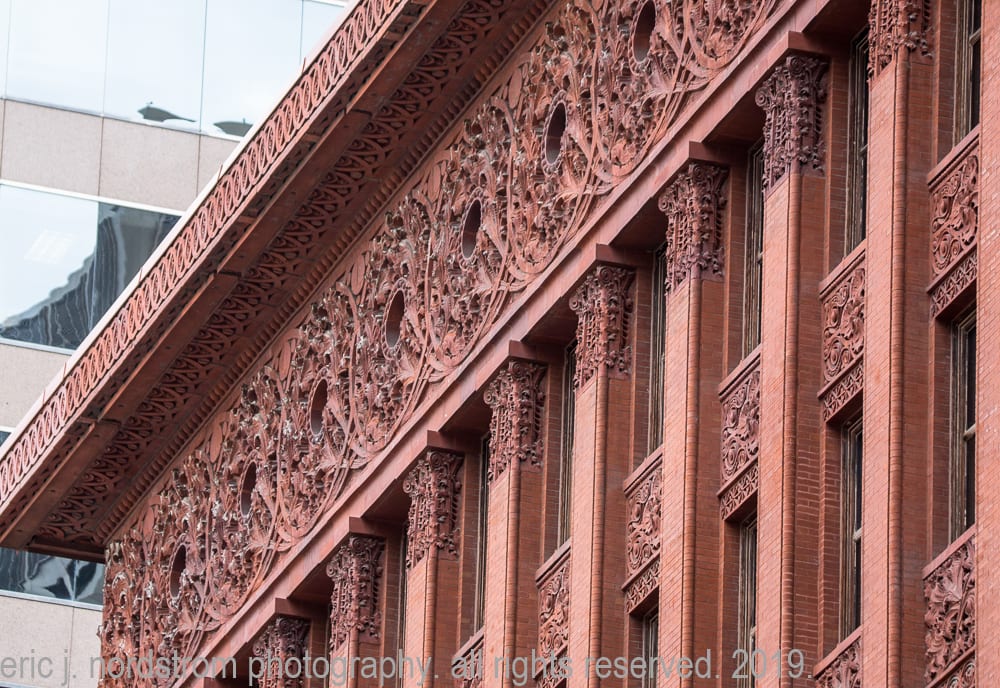 photographic survey (in progress) of sullivan-designed red slip terra cotta spandrel panels, capitals and cornice on wainwright building by adler and sullivan and c.k. ramsey (1891).