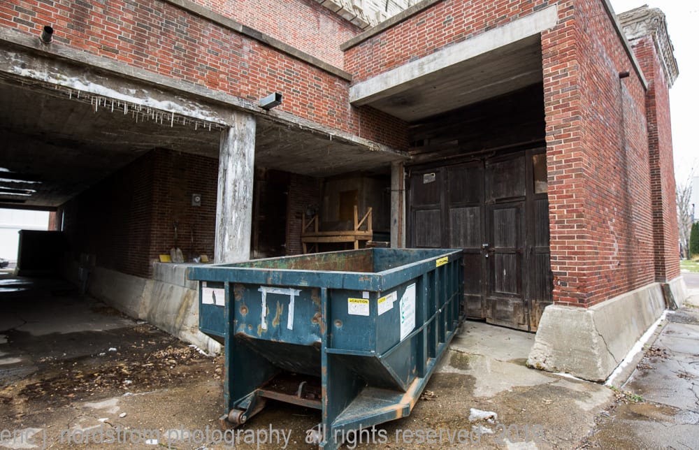the four-story structure has a red brick exterior on the first of its three floors followed by a slightly protruding poured-in-place cast concrete cornice wrapped around the fourth floor. the cast concrete panels were erected by a small crew of masons overseen by general contractor john daughhetee. a local river sand was used in the cement mixture, which is slightly tan in color as it is richer and cleaner from the water flowing through it. the janesville sand and gravel company provided the sand for the warehouse’s concrete panels.