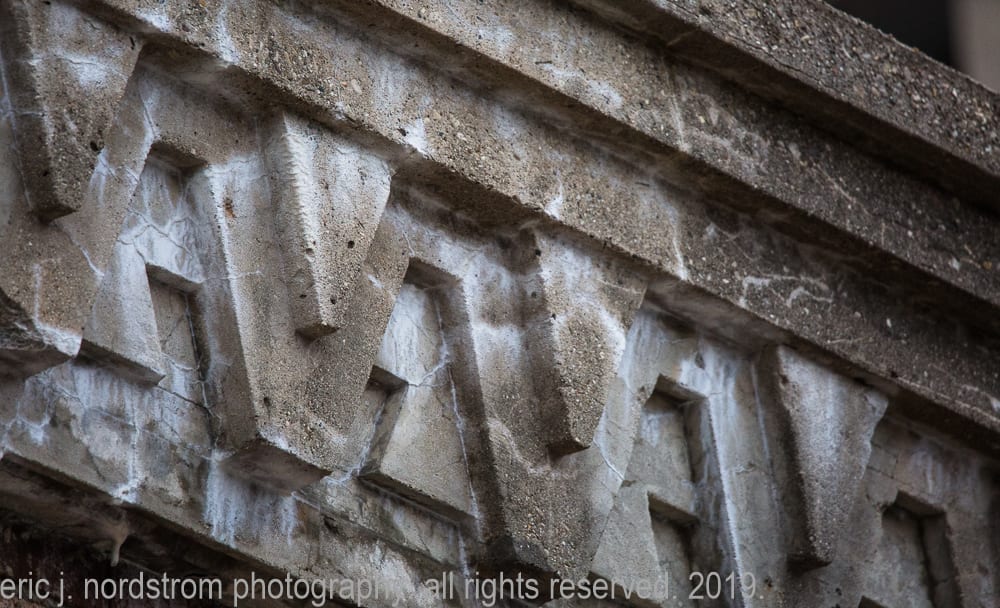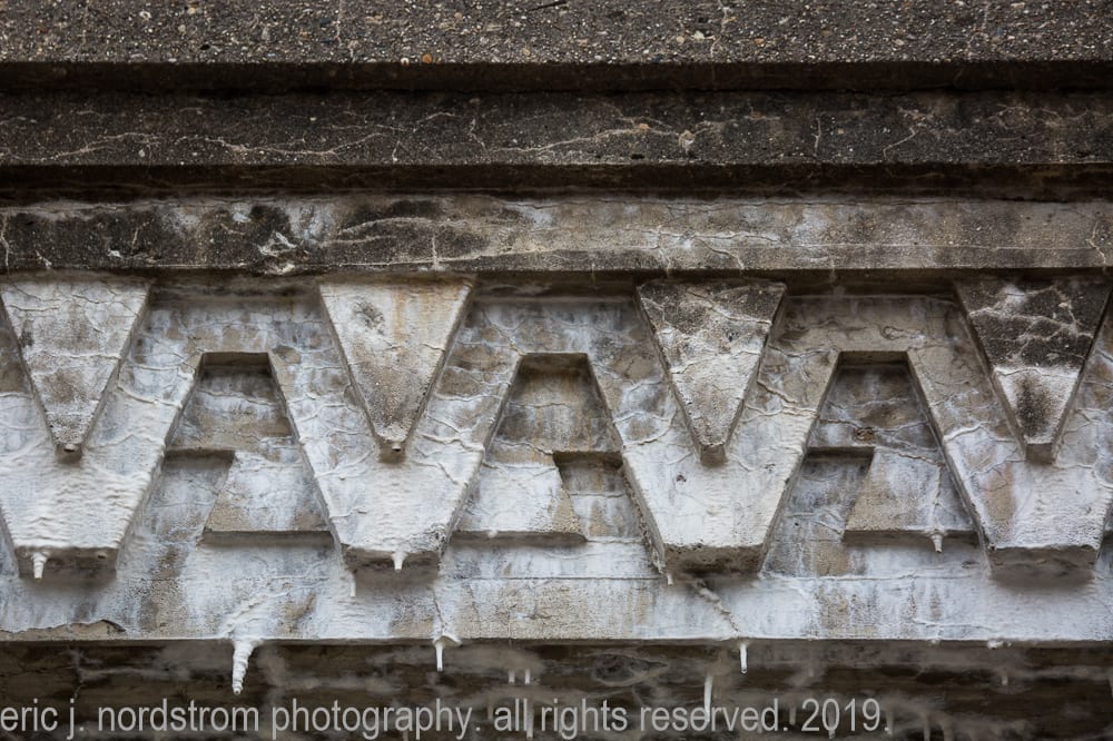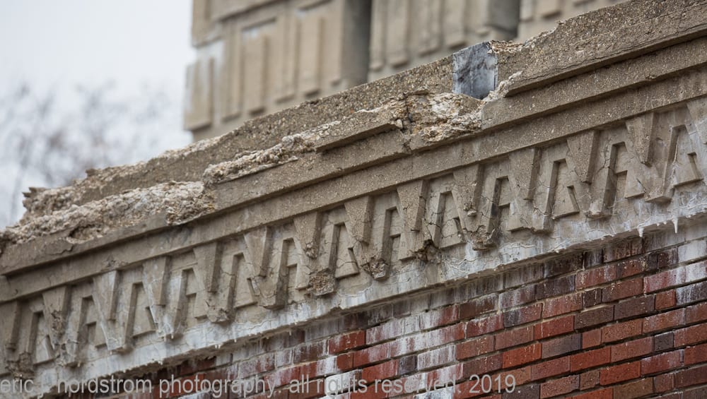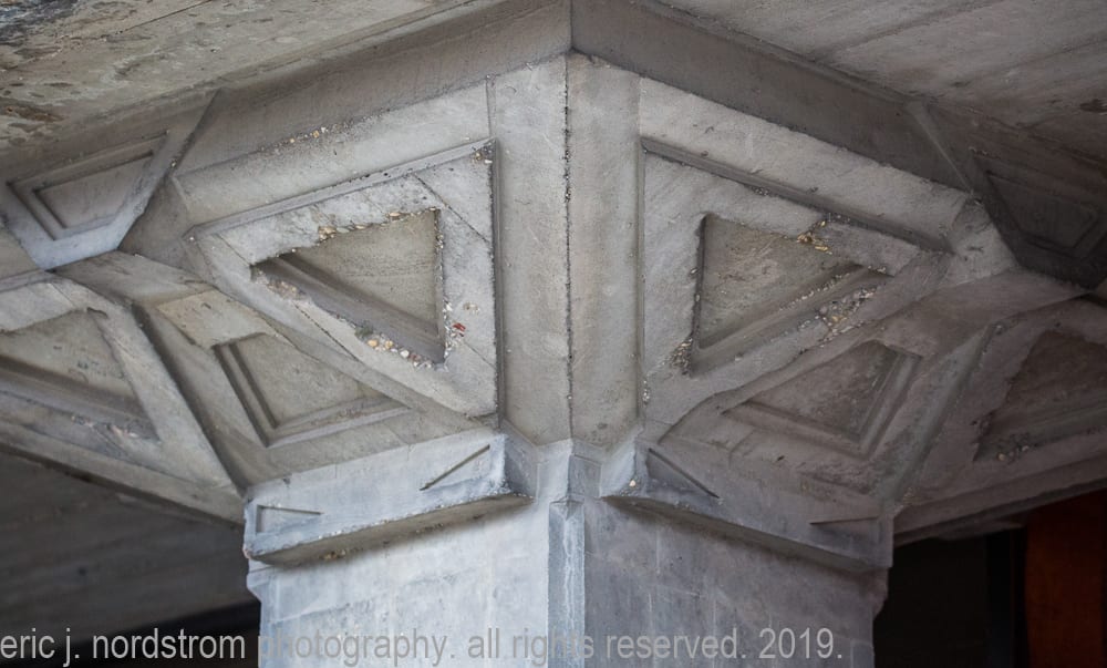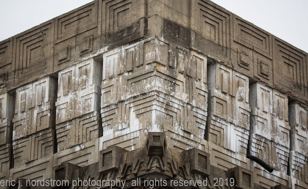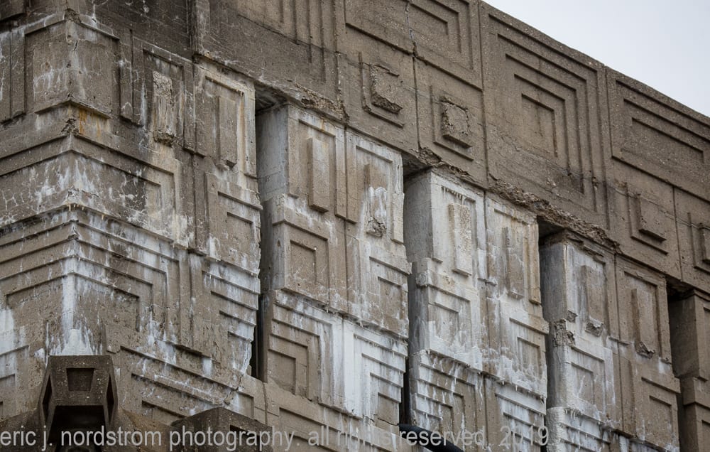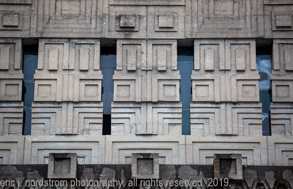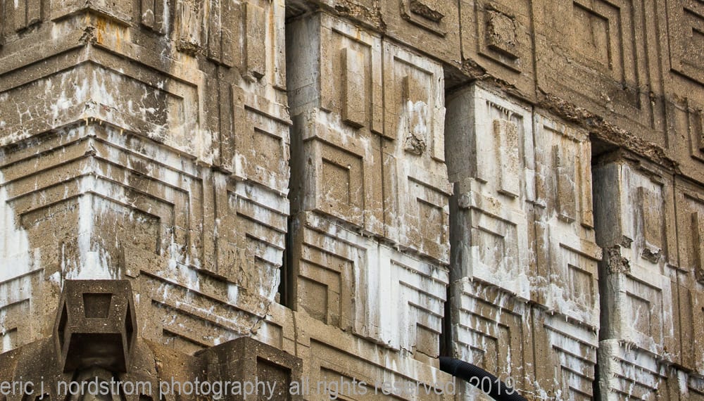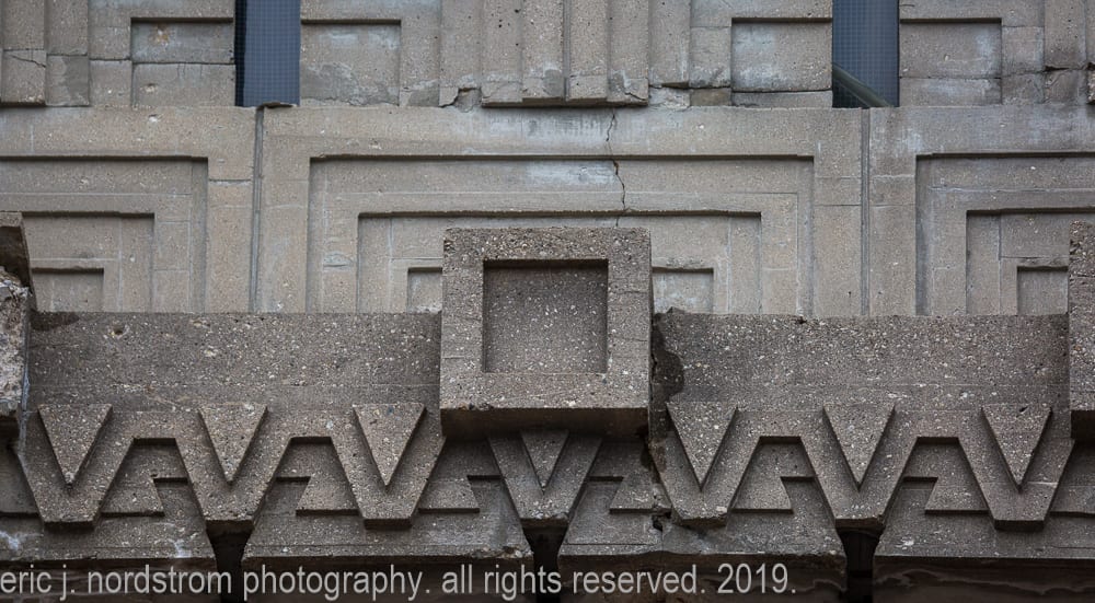 today, the wright-designed concrete panels are in need of repair and restoration. my photographic images show – in great detail – the extent of damage, disintegration, and efflorescence, caused in part by lack of maintenance and prolonged exposure to water and continuous freeze/thaw cycles.
