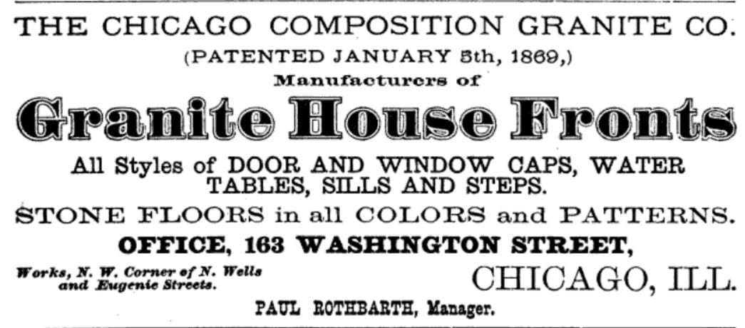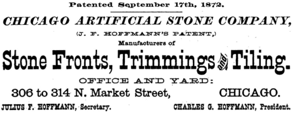 prior to the fire of 1871 (following the civil war), artificial stone had gained traction in becoming a commonly accepted, economical substitute for natural materials. the use of cast stone grew rapidly into the early twentieth century, sometimes comprising the only exterior facing material for a building, but more often as trim on a rock-faced stone or brick wall.