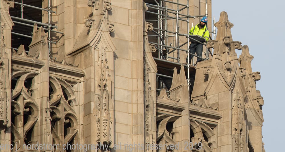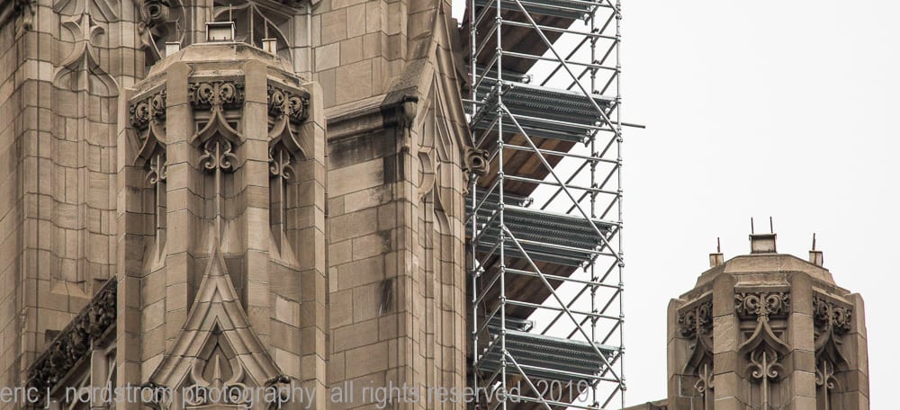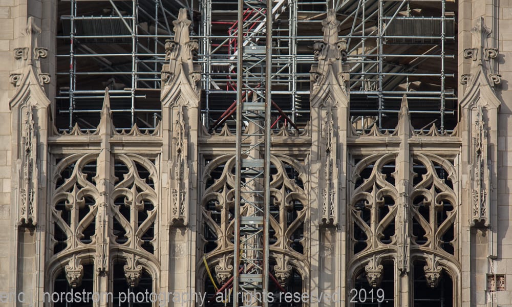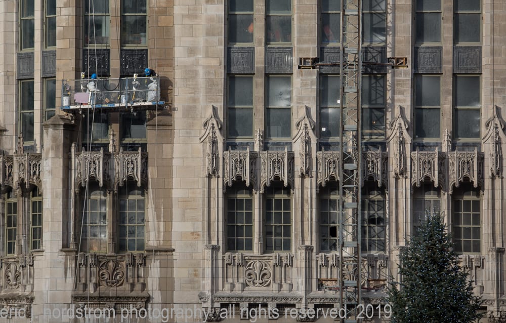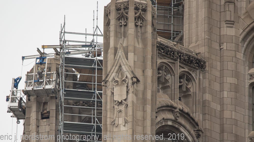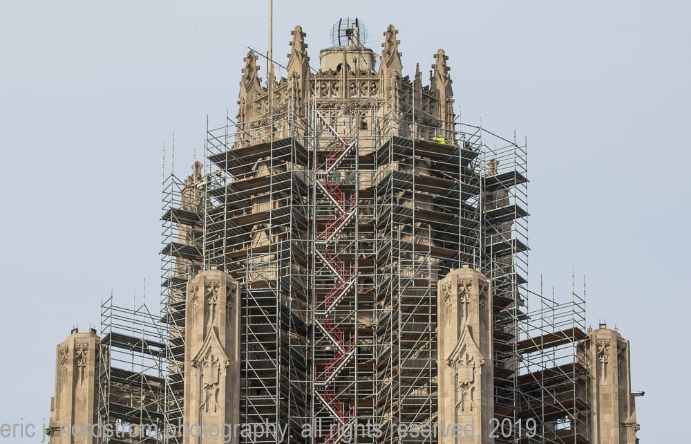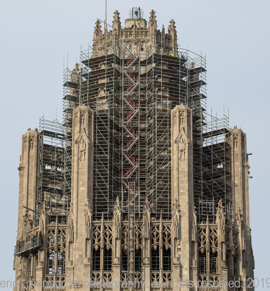 16 Dec latest images from continued exterior restoration work on howell and hood’s chicago tribune tower