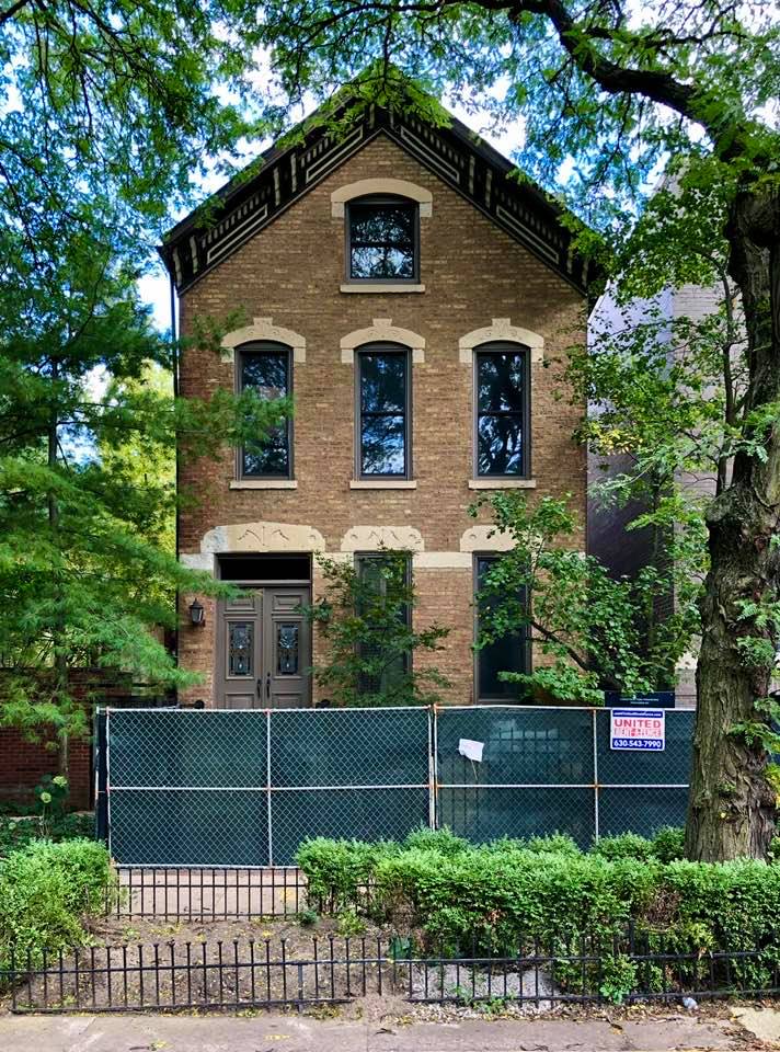 TWO-STORY 1880’S HURON STREET BRICK CHICAGO WORKERS COTTAGE WITH JOLIET LIMESTONE WINDOW HOODS SET TO BE DEMOLISHED IN COMING DAYS