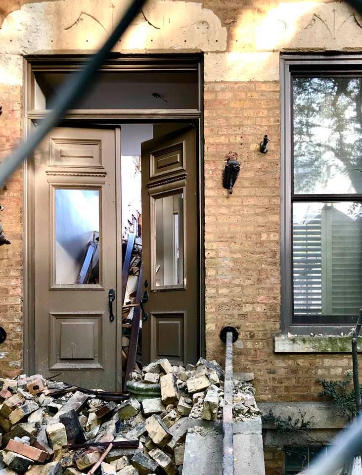 POST-FIRE CHICAGO BRICK WORKERS COTTAGE WITH RARE “ARTIFICIAL STONE” EXTERIOR ORNAMENT FACES DEMOLITION