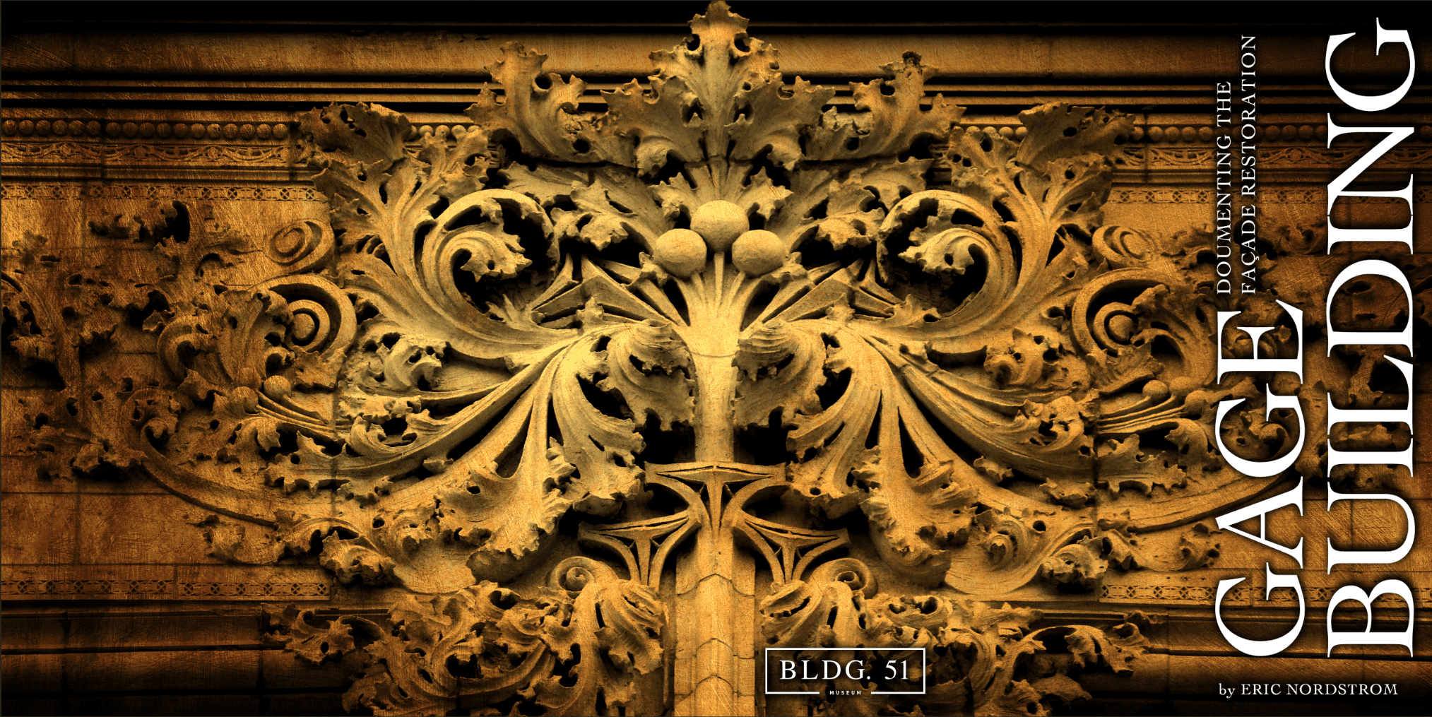 INSTALLATION OF GAGE BUILDING’S RECREATED TERRA COTTA CARTOUCHE COMPLETED, BOOK TO FOLLOW