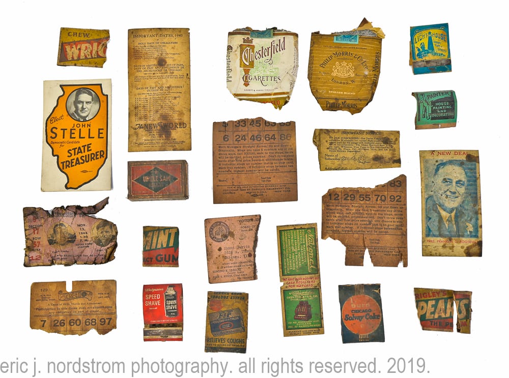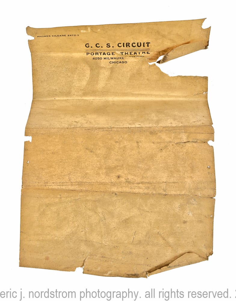 i’m finally consolidating images and ephemera gathered after devoting nearly two years documenting extant chicago depression-era theaters. the discovery of material left behind by the tradesmen who built the theaters, along with piles of “trash” found within the auditorium plenum chambers, was by far the most rewarding experience and, in many ways, interested me more than photographing the interior and exterior architecture.