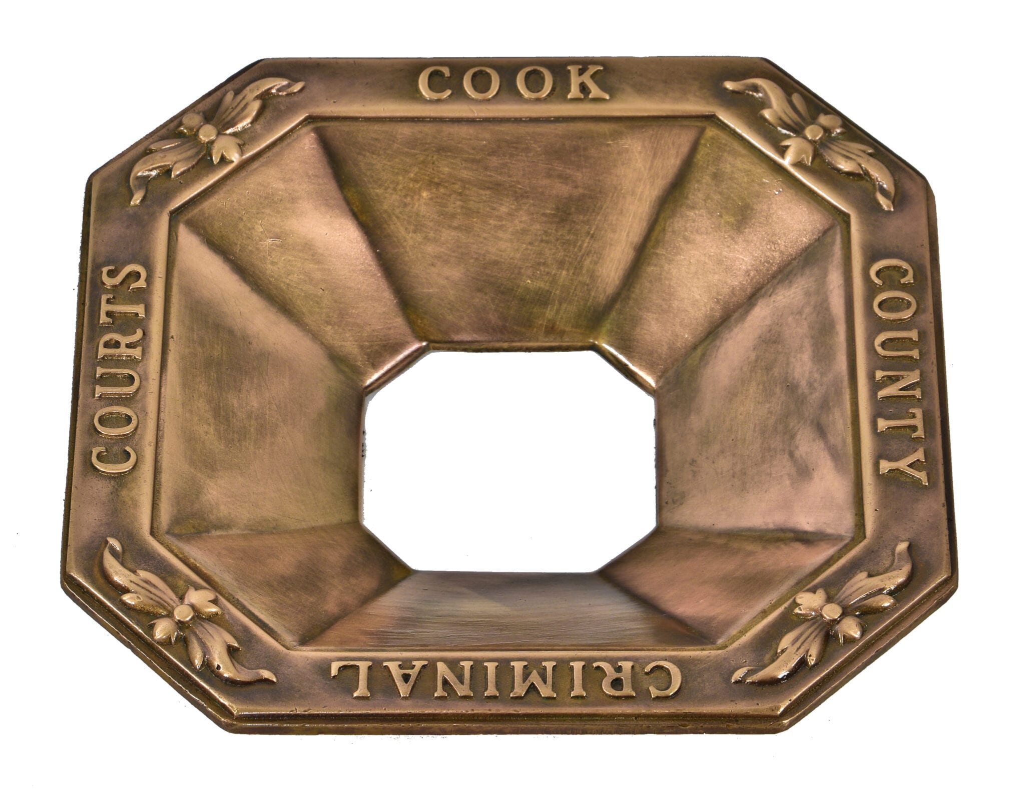 early 20th century cast bronze spittoon cover from the courthouse building. the bldg.51 museum holds a complete spittoon with ornamental “vessel” featuring rosettes.