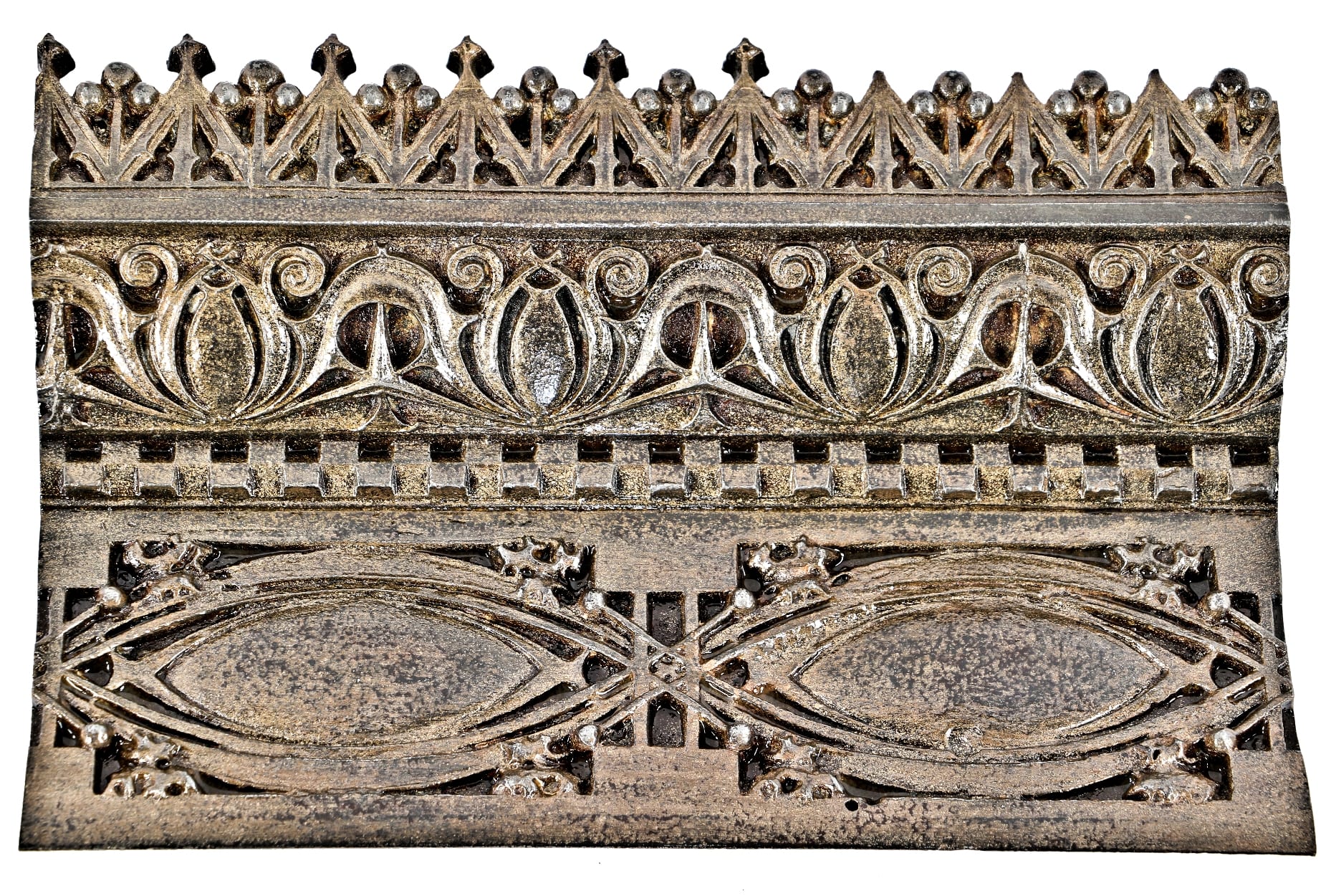 ornamental cast iron stringer section removed from the the gage building’s street level facade during the 1950’s. the louis sullivan-designed ornament was fabricated by the winslow brothers foundry, chicago, ills.