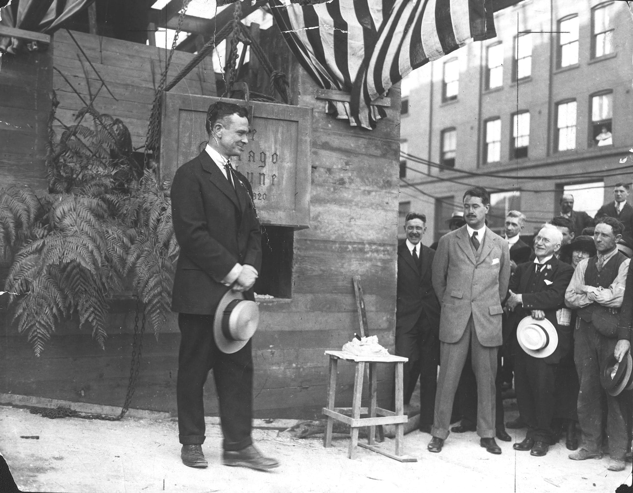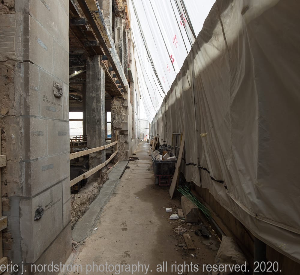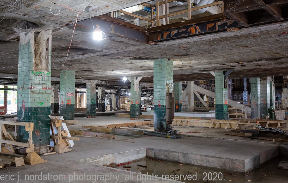 the newsroom, located on the top floor of the printing plant quickly vanished as work on the tower and adjoing plant commenced. the tower, which has been entirely gutted, including mccormick’s lavish wood paneled personal office with towering limestone mantel and ornamental brass chandeliers.