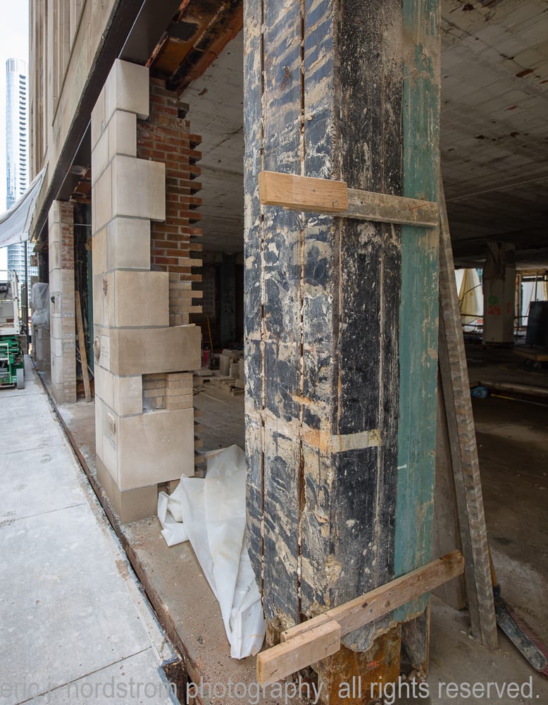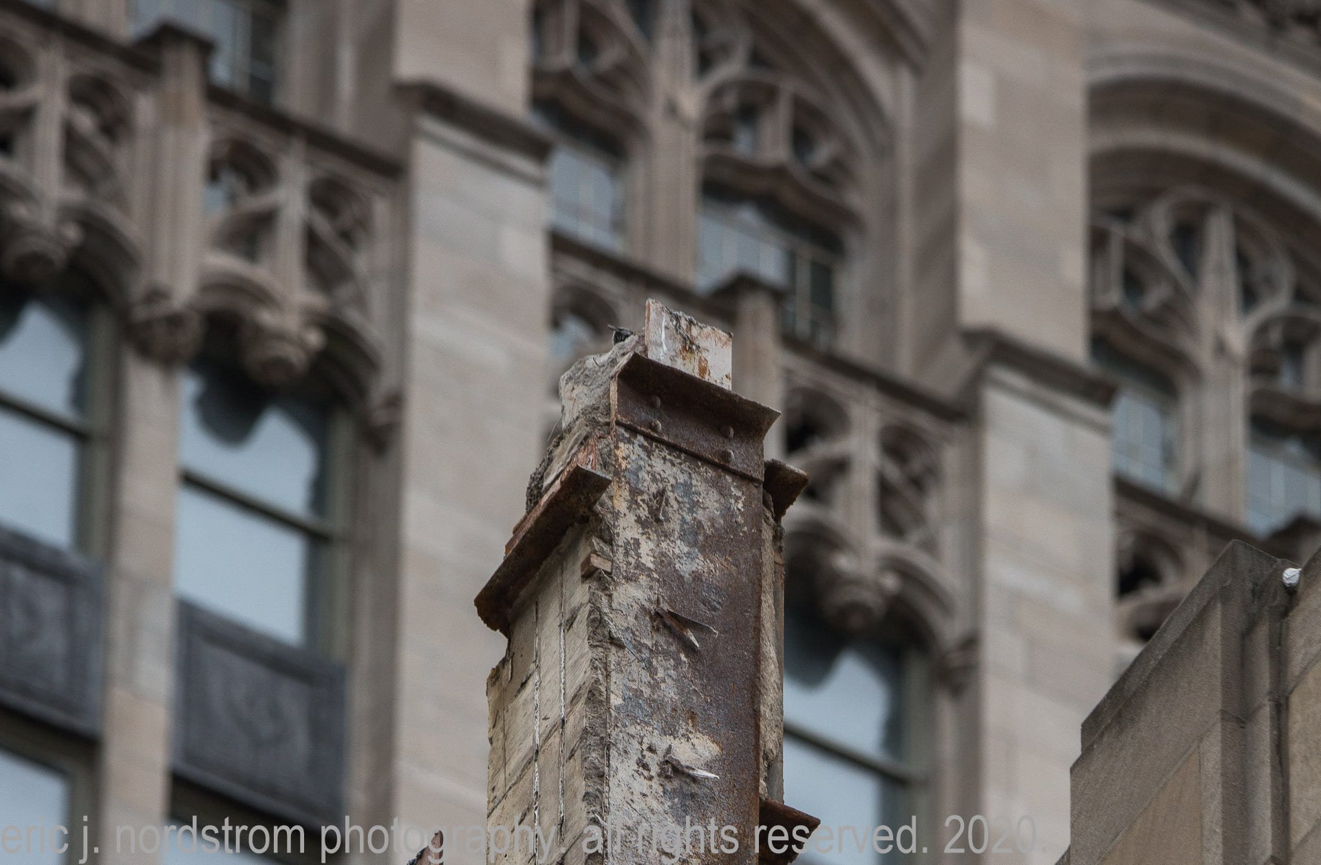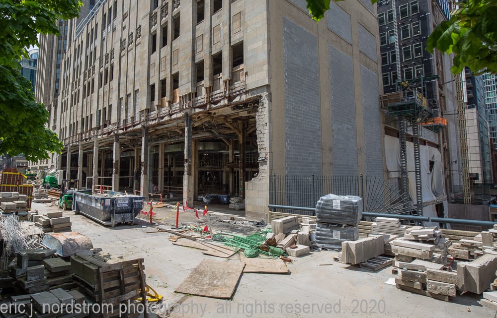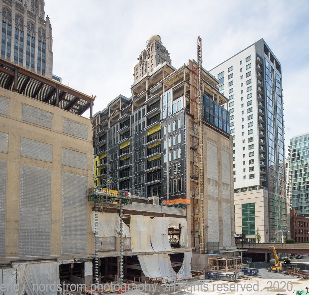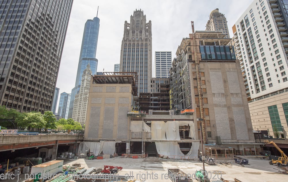 continued photo-documentation of chicago tribune printing plant building (east of tower) designed by jarvis hunt in 1920, predating howells and hood’s gothic revival limestone tower by five years.