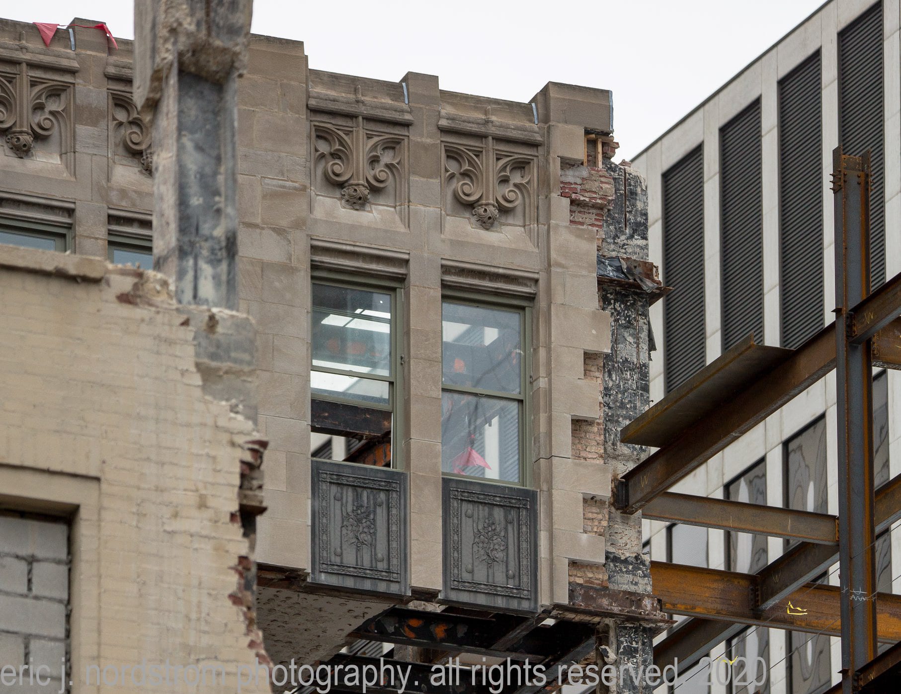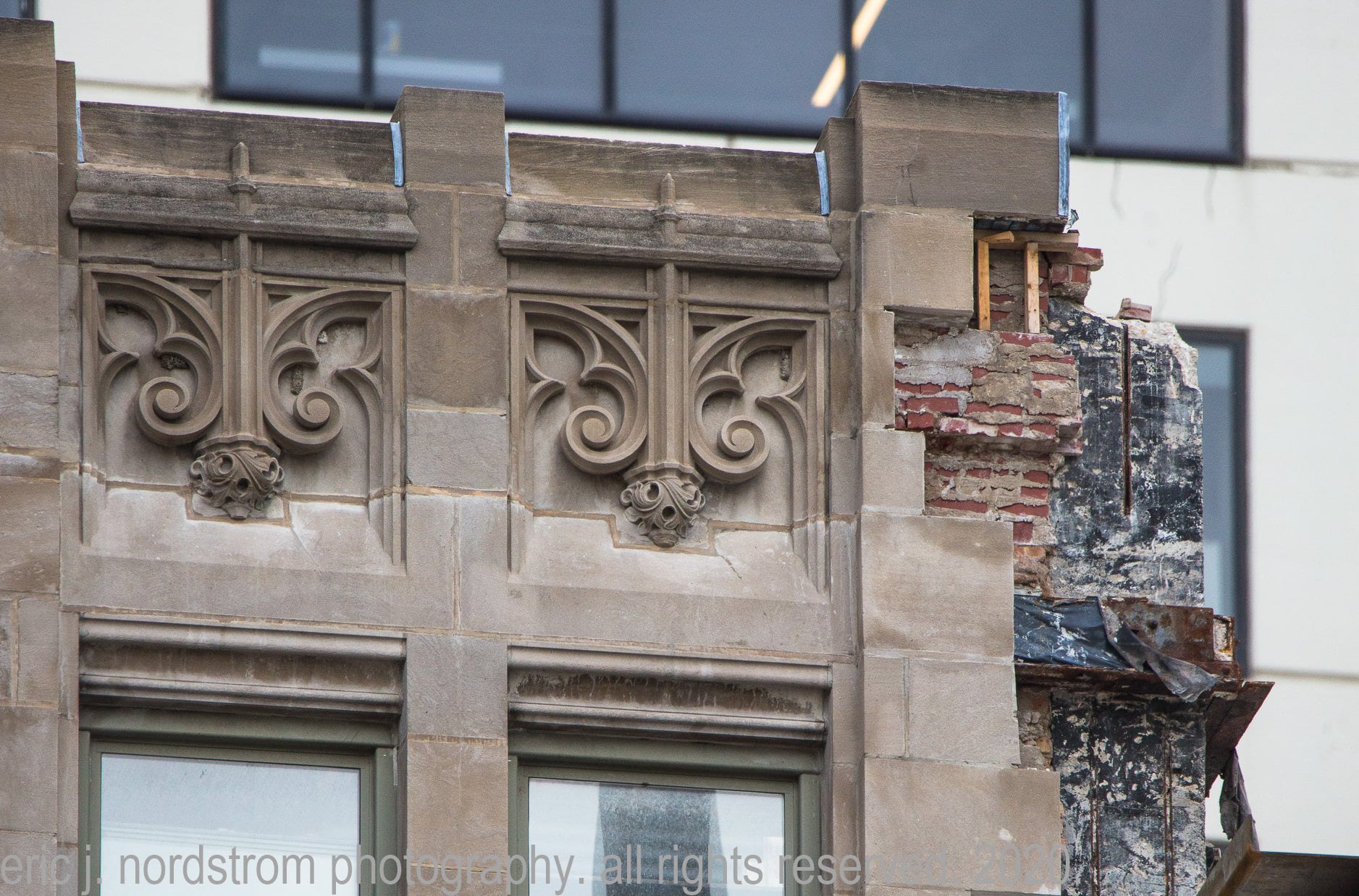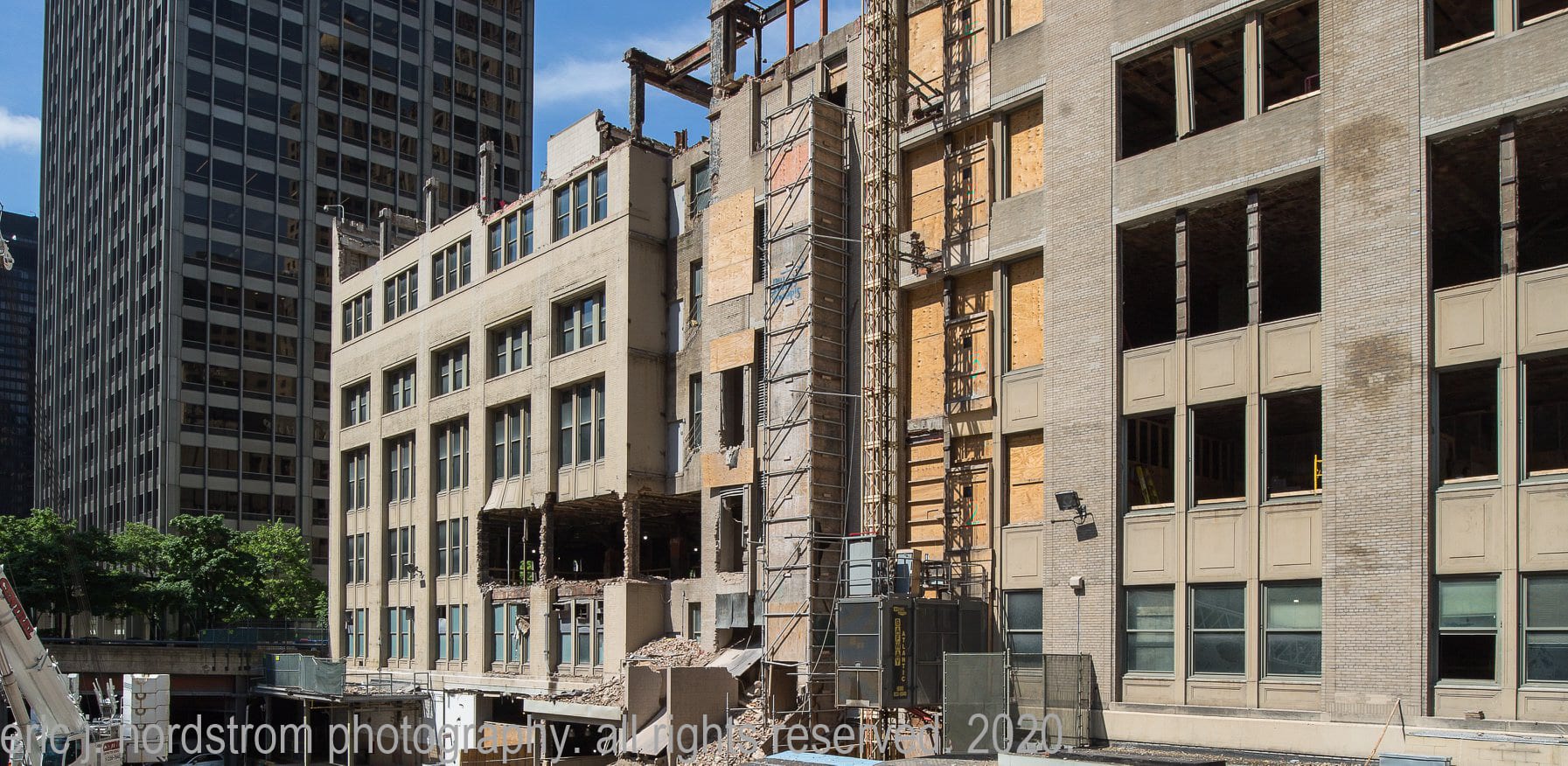 continued photo-documentation of chicago tribune printing plant building (east of tower) designed by jarvis hunt in 1920, predating howells and hood’s gothic revival limestone tower by five years.