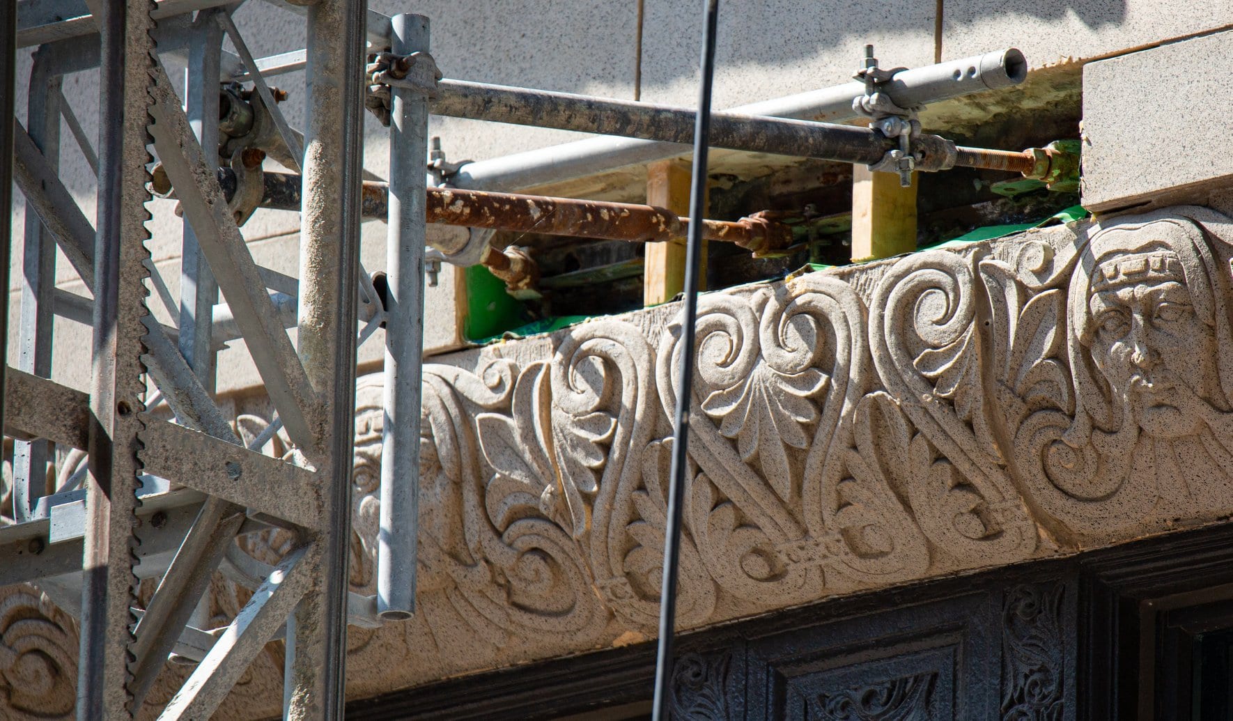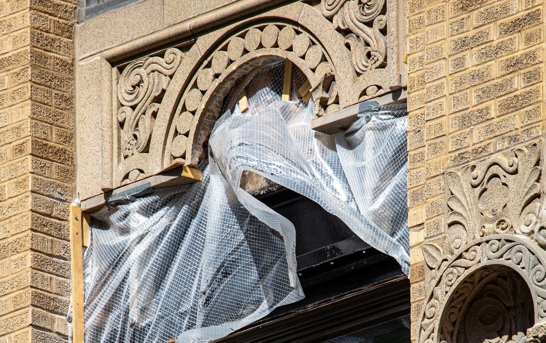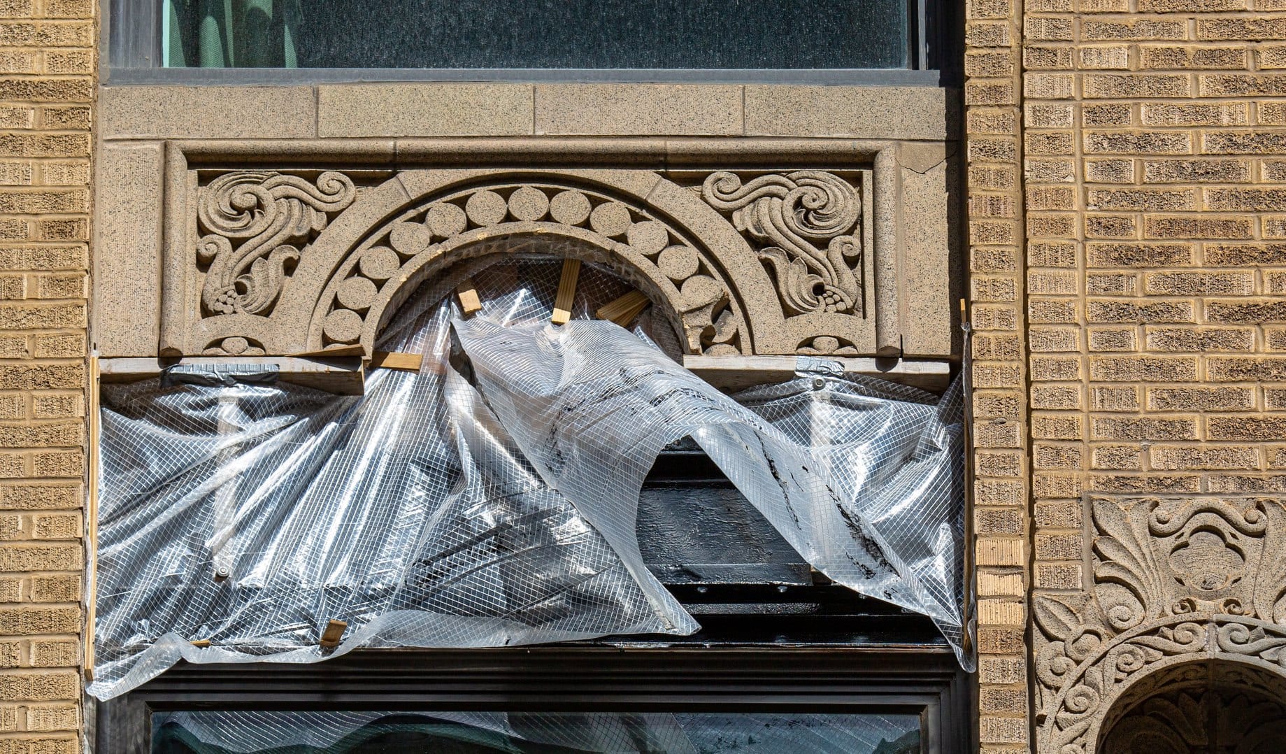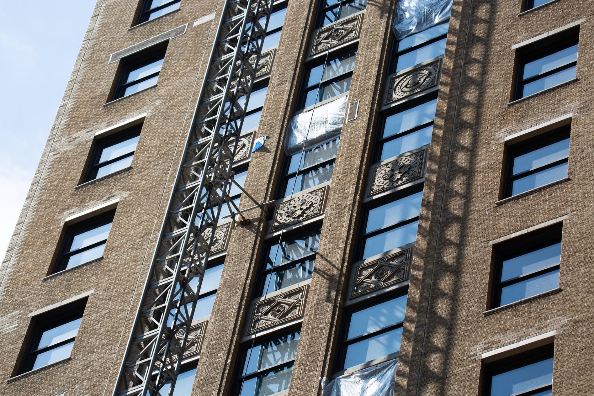 29 Jul latest images of exterior restoration work on rapp and rapp’s 1928 old dearborn bank building