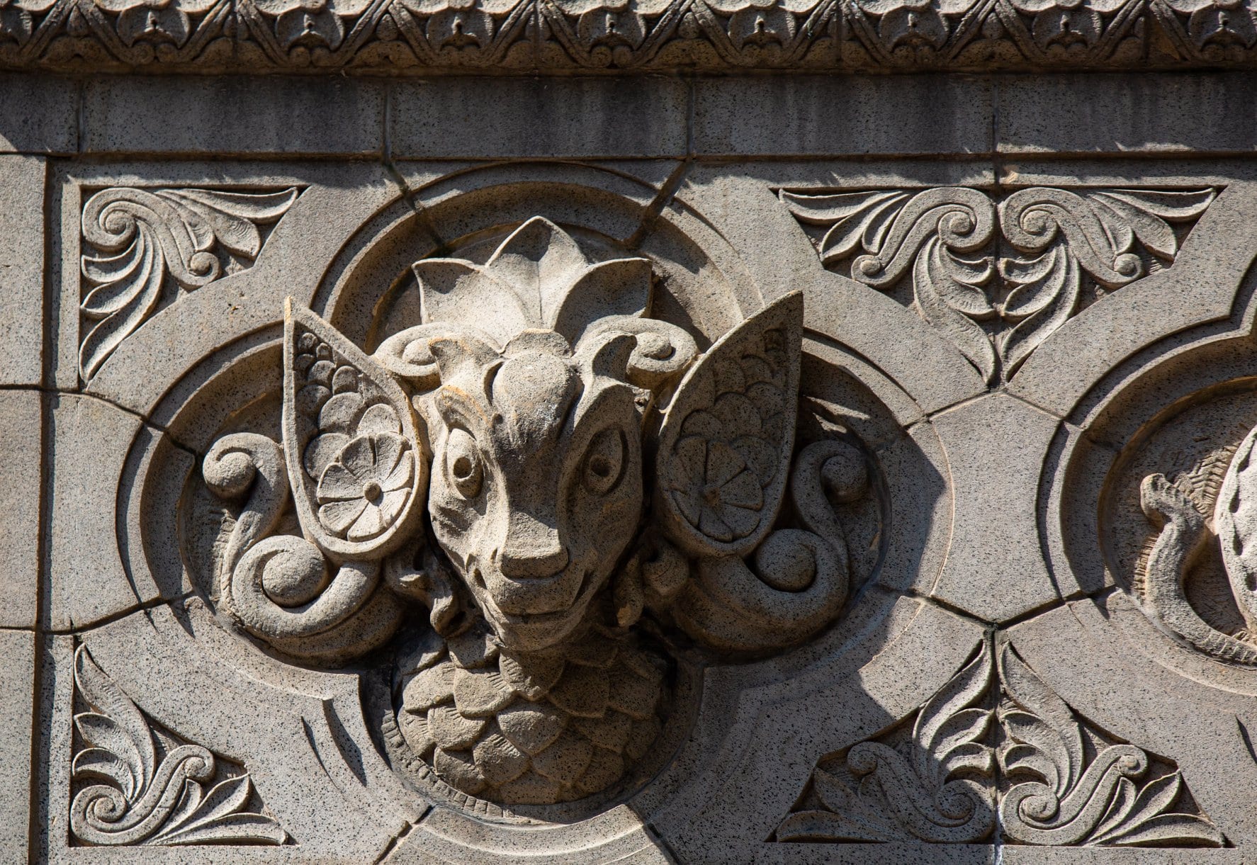 i believe the buff-colored speckled glaze terra cotta ornament was executed by the american terra cotta company, but i need to double check my catalogs.