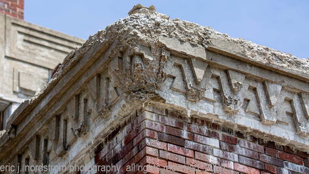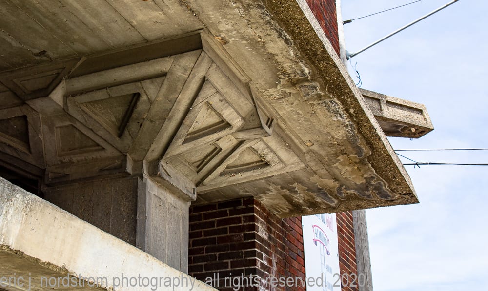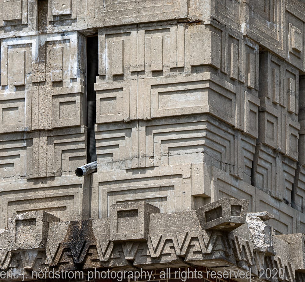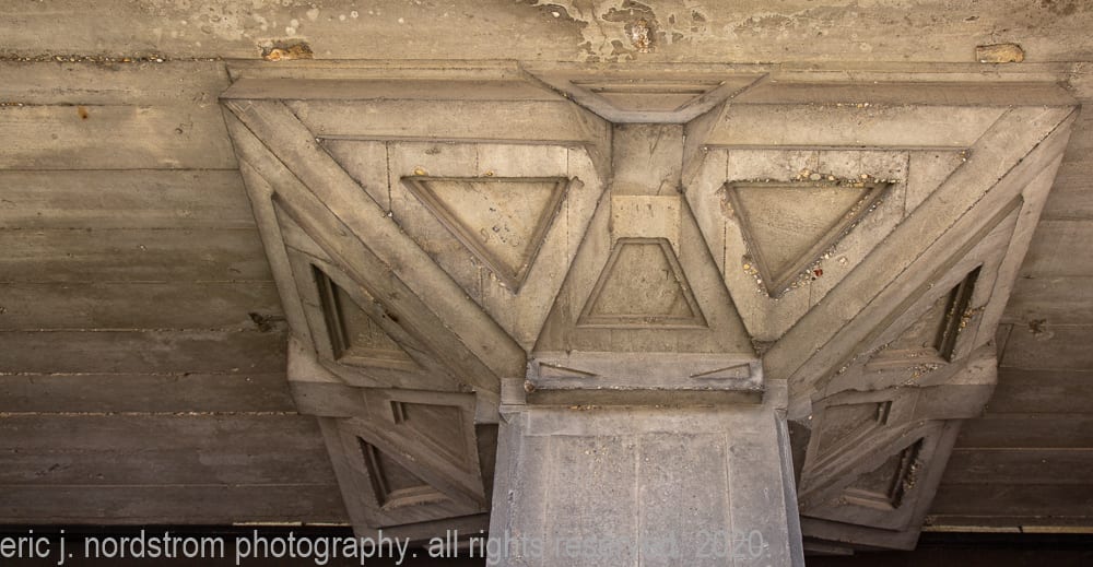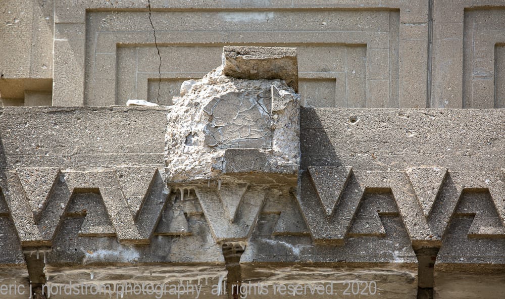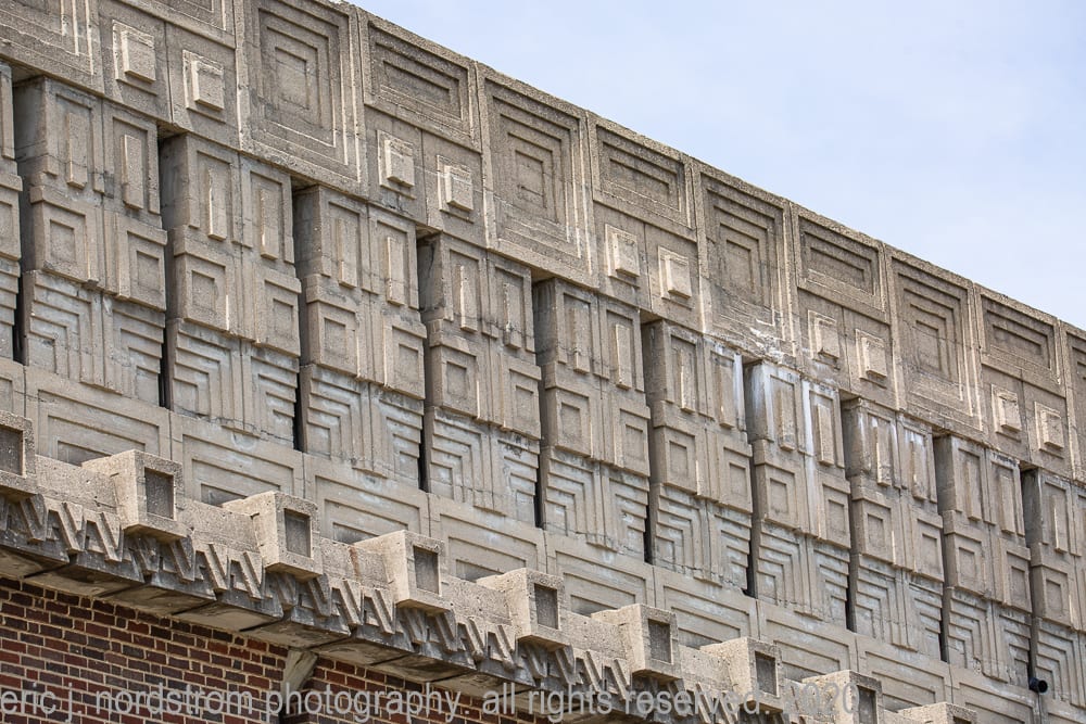 as i mentioned last last year, the wright-designed concrete panels are in need of repair and restoration. my photographic images show – in great detail – the extent of damage, disintegration, and efflorescence, caused in part by lack of maintenance and prolonged exposure to water and continuous freeze/thaw cycles. i hope the necessary funds are secured to begin badly needed repairs to the exterior.