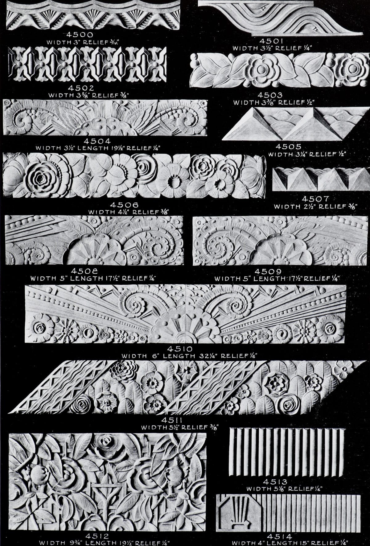 several cast plaster frieze “stock” patterns offered by the architectural decorating company.