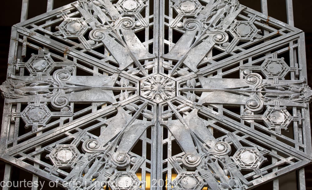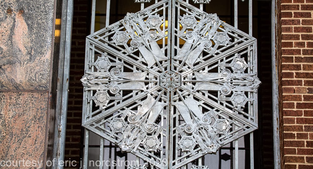 emil zettler modeled the school’s exterior statues. the maker of the cast aluminum hexagonal-shaped grilles or “snowflakes” adorning the entrance is not known. the school was constructed by the patrick warren construction company of chicago.
