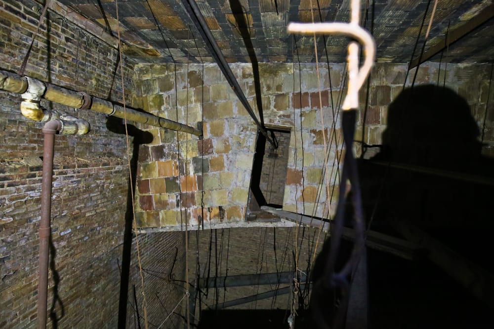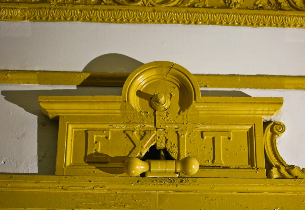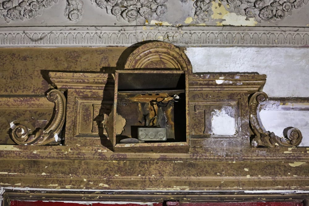 the following images were taken back in january, on a dreary afternoon day, where my assistant and i gained access through pastor dr. robert marshall. despite lacking power and heat, i managed to capture both the micro and macro “elements” contained within this prototypical “movie palace” with the use of portable lighting brought along with camera equipment and safety gear (e.g., fall-protection, etc.), so i was able to traverse and document the multi-chambered, fire-proofed “attic” space above the arched plaster ceiling.