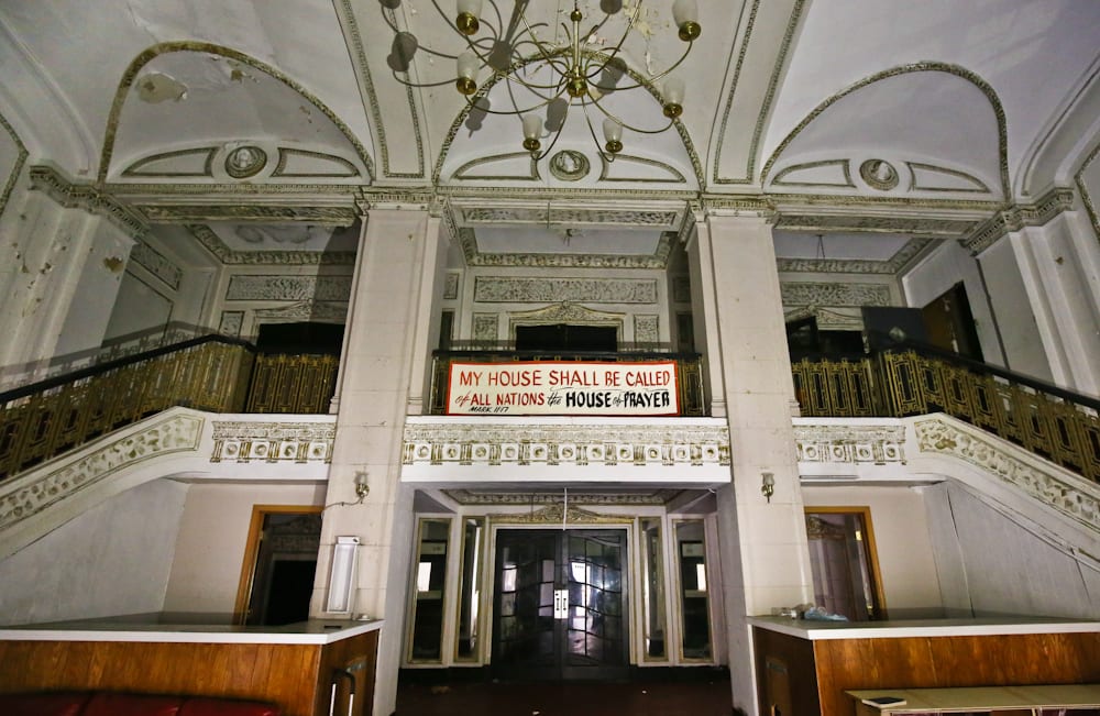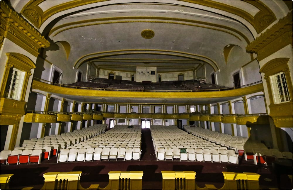 central park theater’s auditorium as of january, 2016. note the removal of the false ceiling installed in the early 1970’s when the shuttered theater was converted into a church.