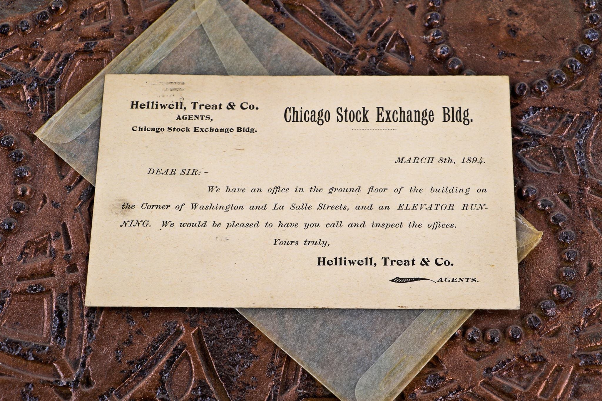 as of late, i’ve been buying any and all post cards pertaining to first chicago school buildings, sullivan’s “jewel boxes,” and company trade cards that fabricated the materials for these buildings. enlarging and printing them for use with building artifact displays provides context and/or enhances the narrative.