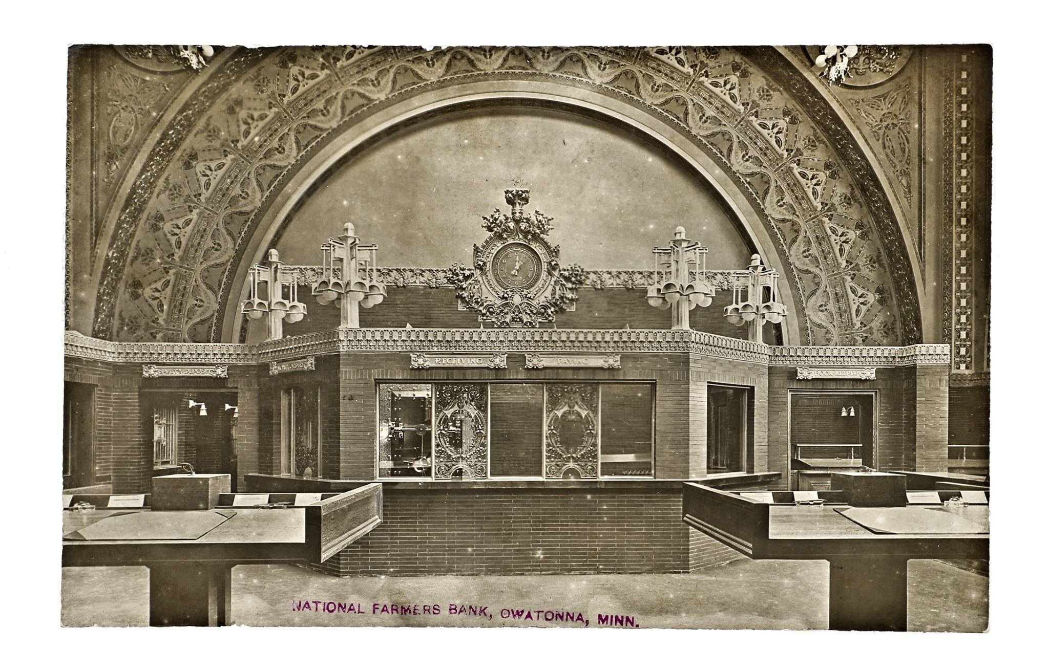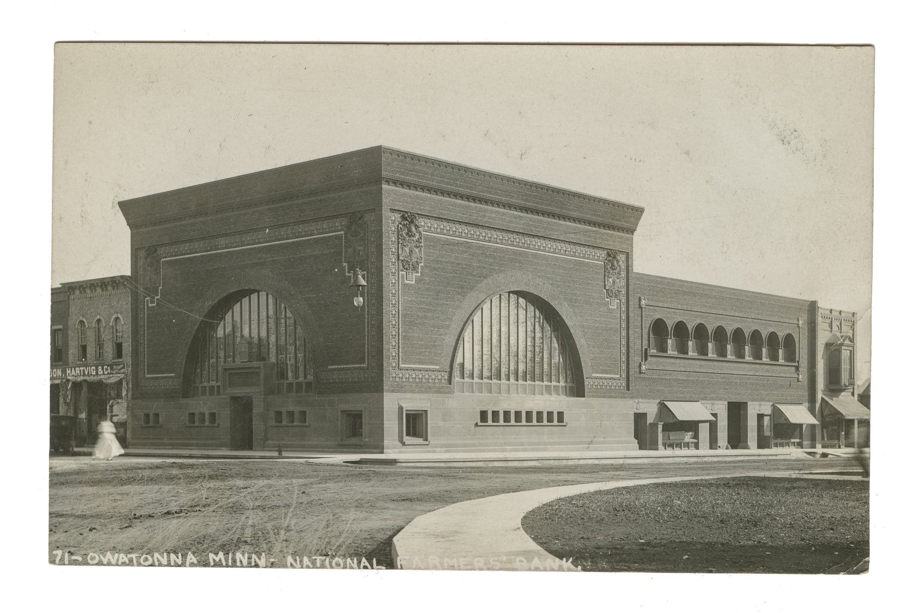 real photo post cards (rppc) of louis h. sullivan’s national farmer’s bank of owatonna, shortly after it was completed in 1908.