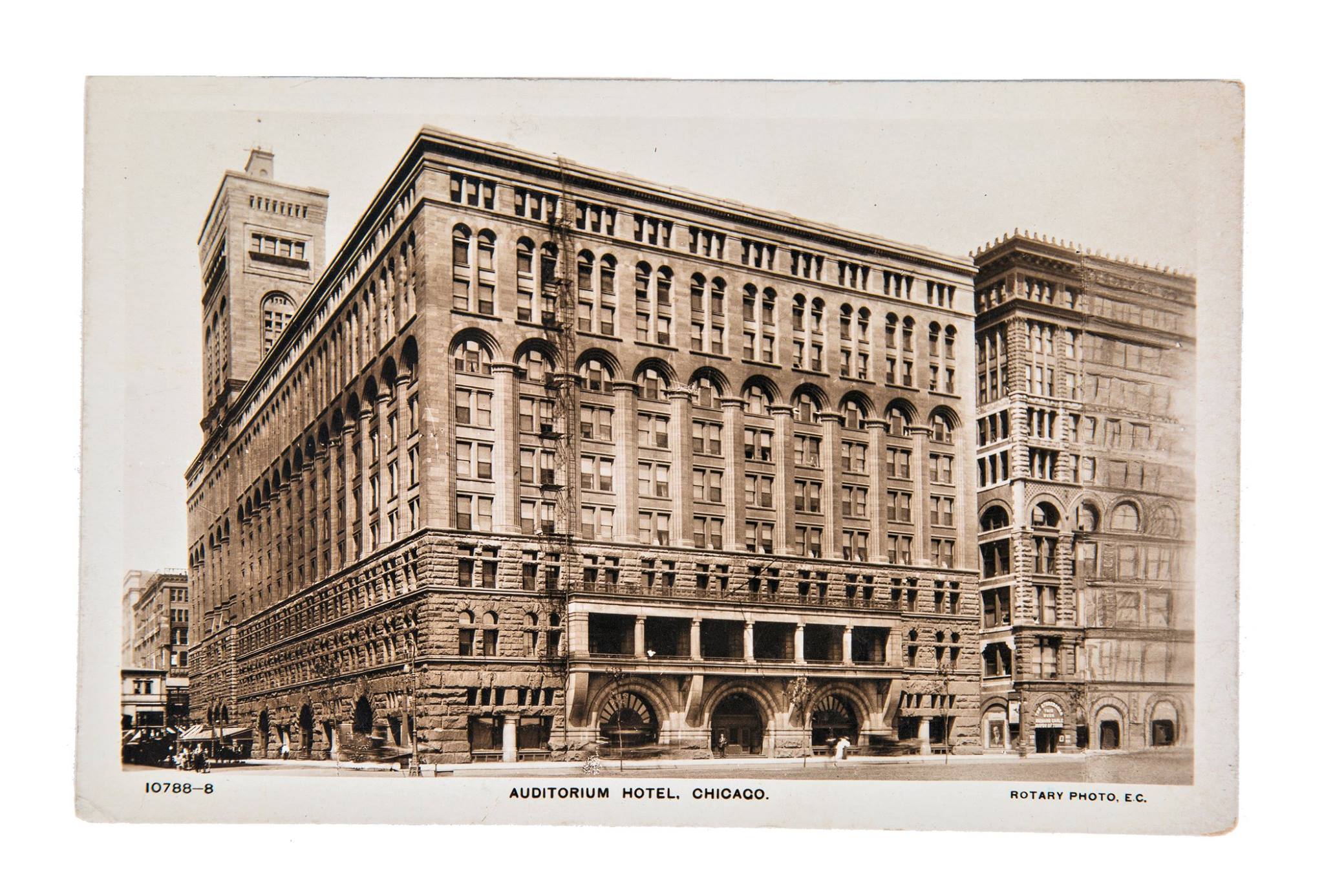 early 20th century real photo postcard (rppc) of adler and sullivan’s auditorium building (1889).