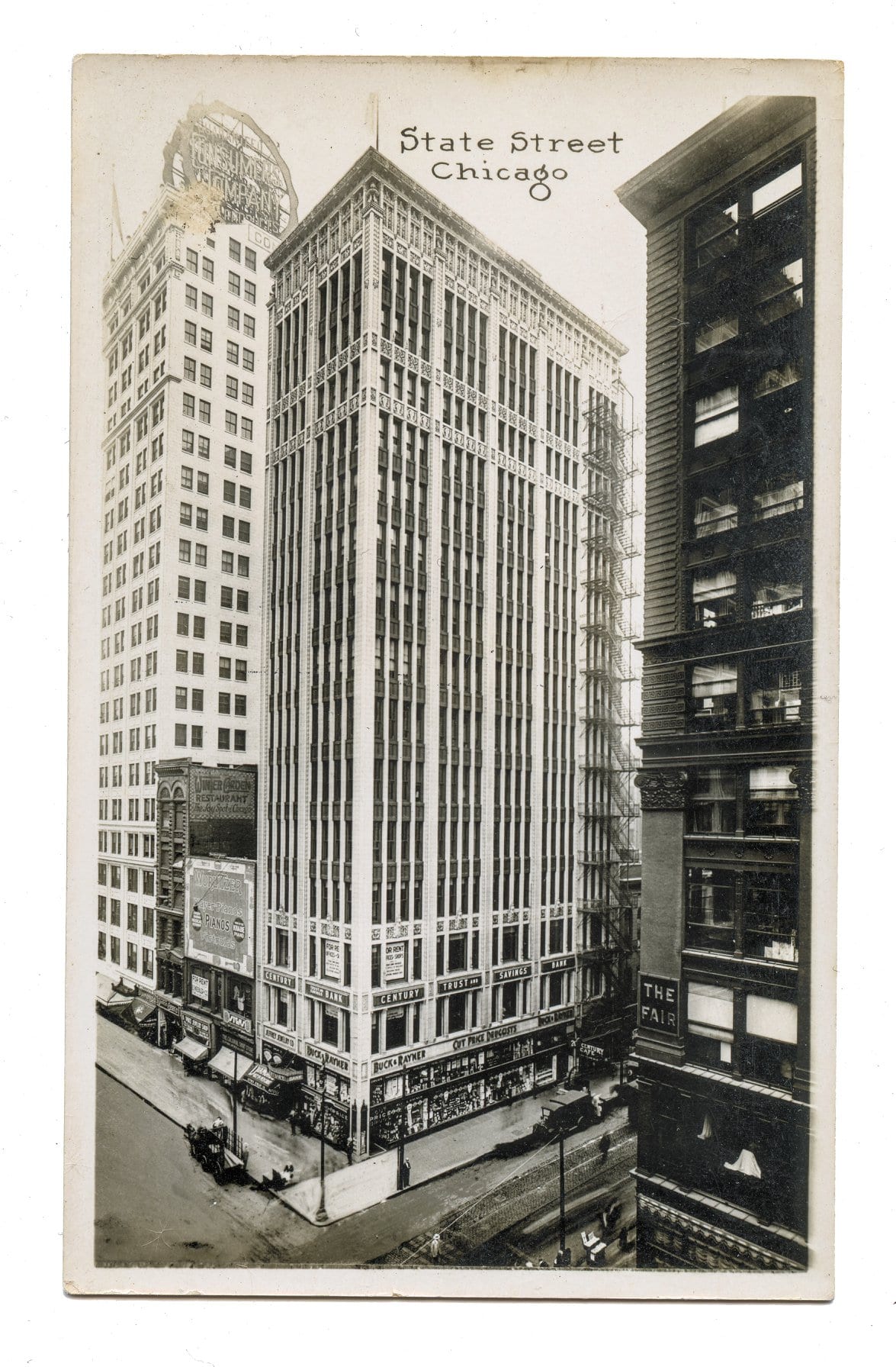 the other two show louis h. sullivan’s gage building (1899) as it appeared prior to the four additional stories added in 1902, and montgomery ward (also schmidt, garden, and martin) shortly after it opened in 1908.