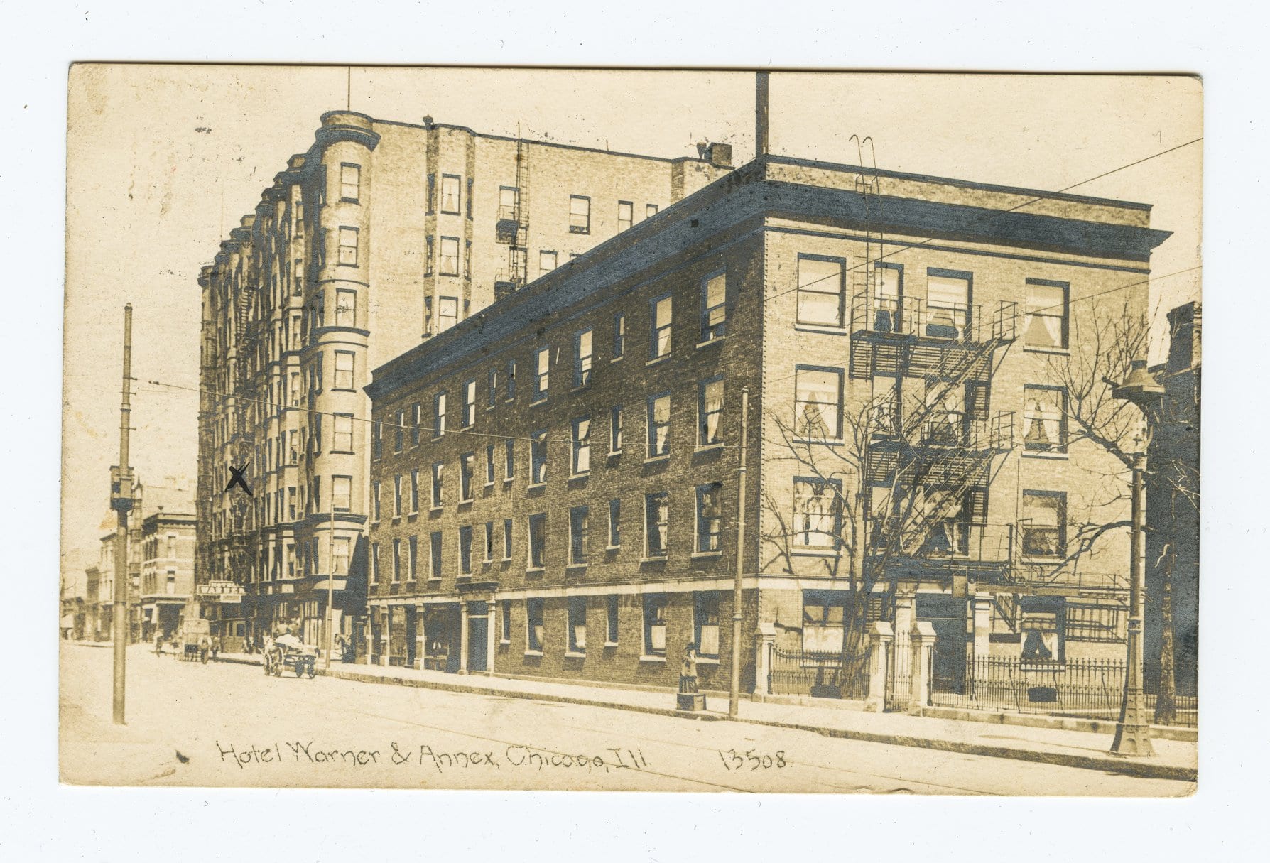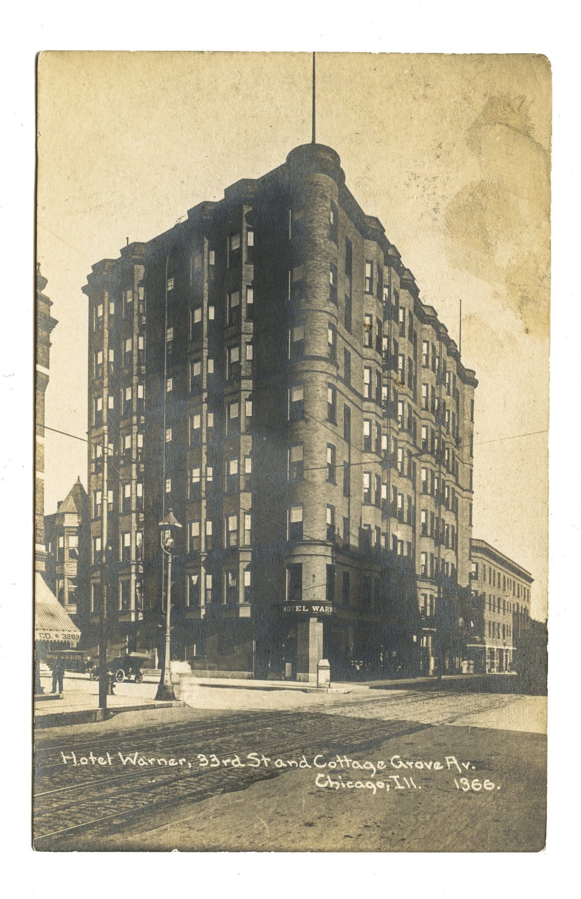 real photo post card (rppc) of the non-extant 19th century south side chicago warner hotel. still researching architect and build date. i know for certain it’s not clinton warren, but looks similar to his hotels (e.g., lakota, metropole, lexington, etc).