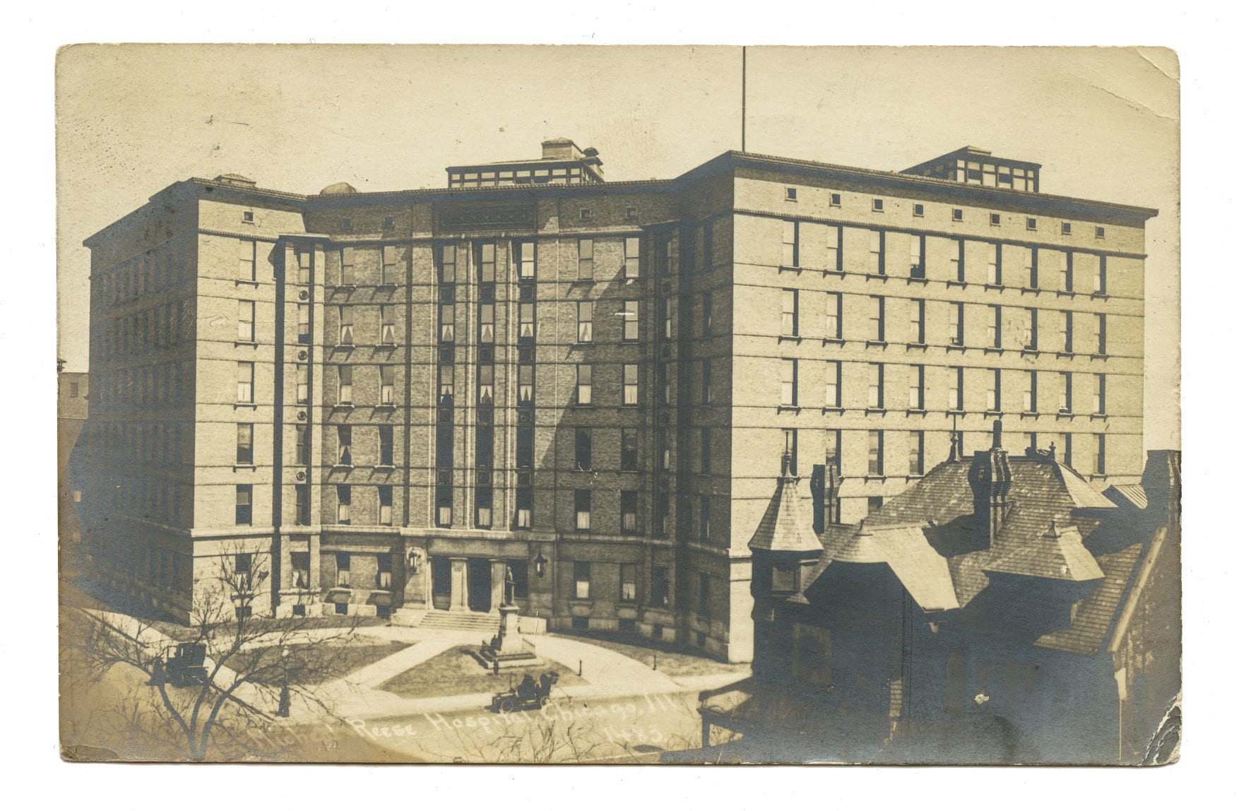 real photo postcard (rppc) of schmidt, garden, and martin’s michael reese hospital taken five years after it was built in 1907.
