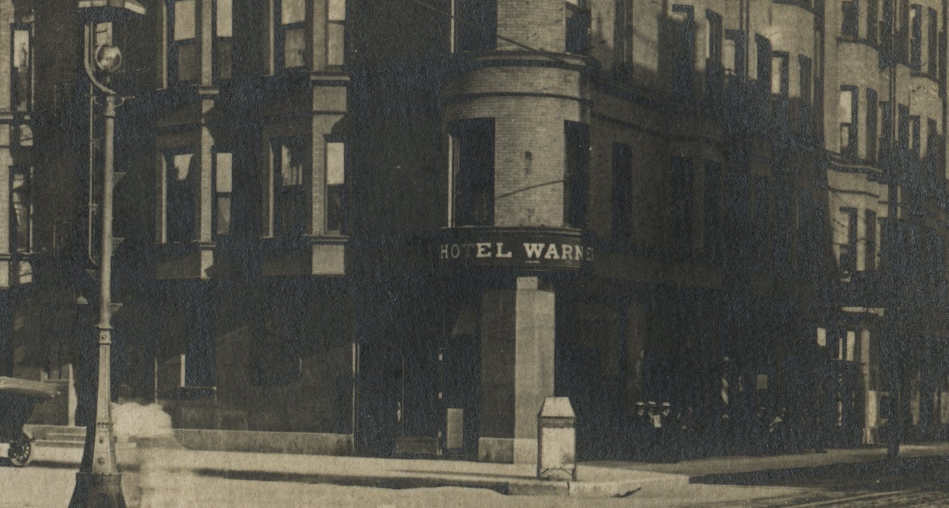 the hotel and annex had 300 rooms, with 200 equipped with private bathrooms. the hotel – which wasn’t known as warner until 1901 – housed the popular warner cafe located on street level. it was converted into hotel and apartments in 1911, with daily rates beginning at a dollar or a buck and a half with bathroom. weekly and permanent rates were offered at discount.
