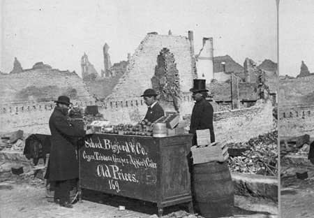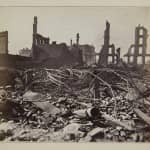 kerfoot would become a prominent figure in the city, he was on the board of directors for the 1893 exposition, and served as the city controller around the turn of the century. clearly, his gumption was unusual, but the sentiment embodied in the signage and in the effort to re-build extended to many other late 19th century chicagoans. other post-fire images depict people making do with very little, as seen by temporary structures risen among a landscape of ruins.