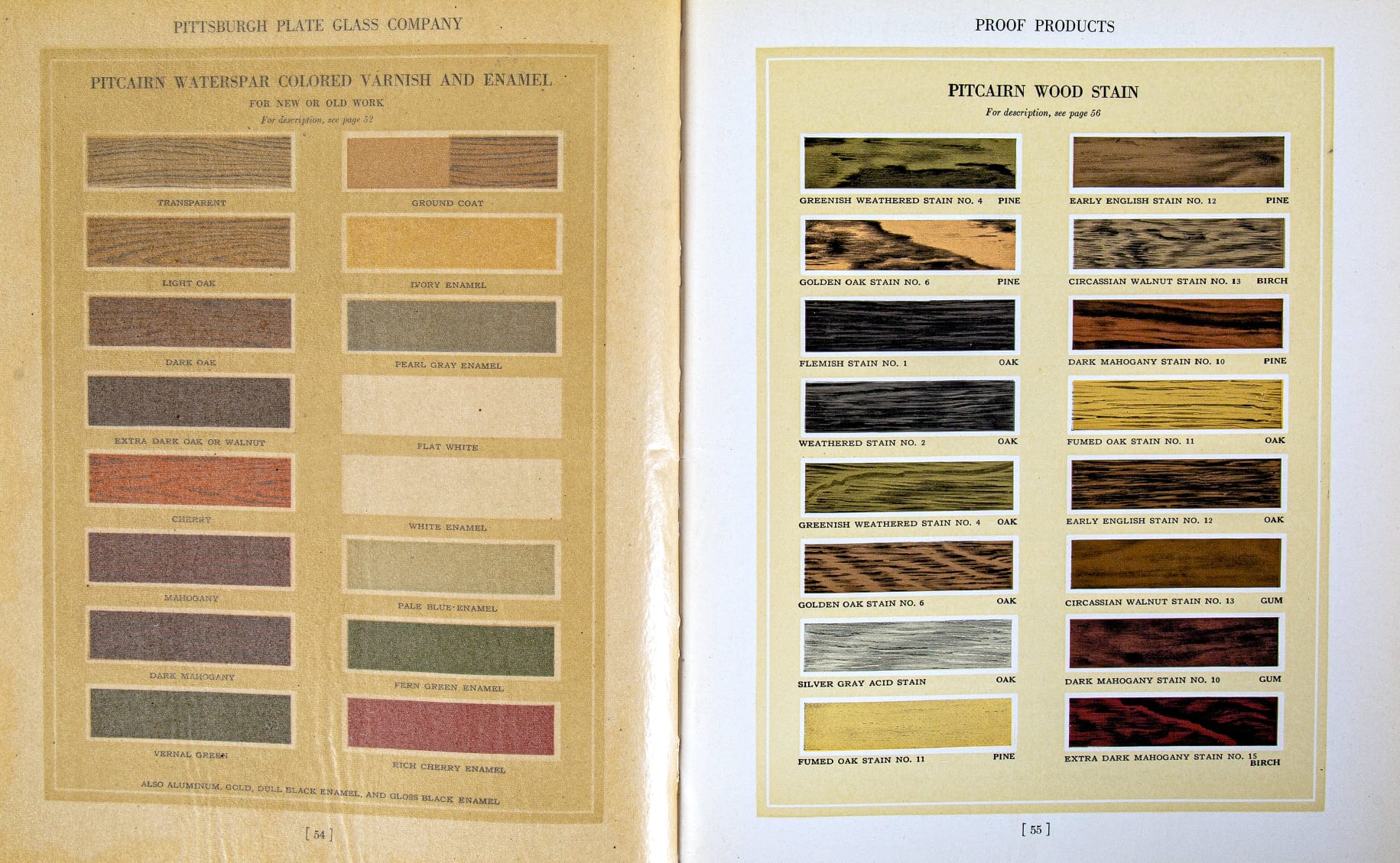 pittsburgh plate glass was founded in 1883 by captain john baptiste ford and john pitcairn, jr. as the pittsburgh plate glass company at creighton, pennsylvania. the company later changed its name to ppg industries, inc. in 1968. ppg industries is now an american global supplier of paints, coatings, optical products, specialty materials, chemicals, glass, and fiberglass with headquarters in pittsburgh, pennsylvania. the catalog measures 9 x 11 inches.