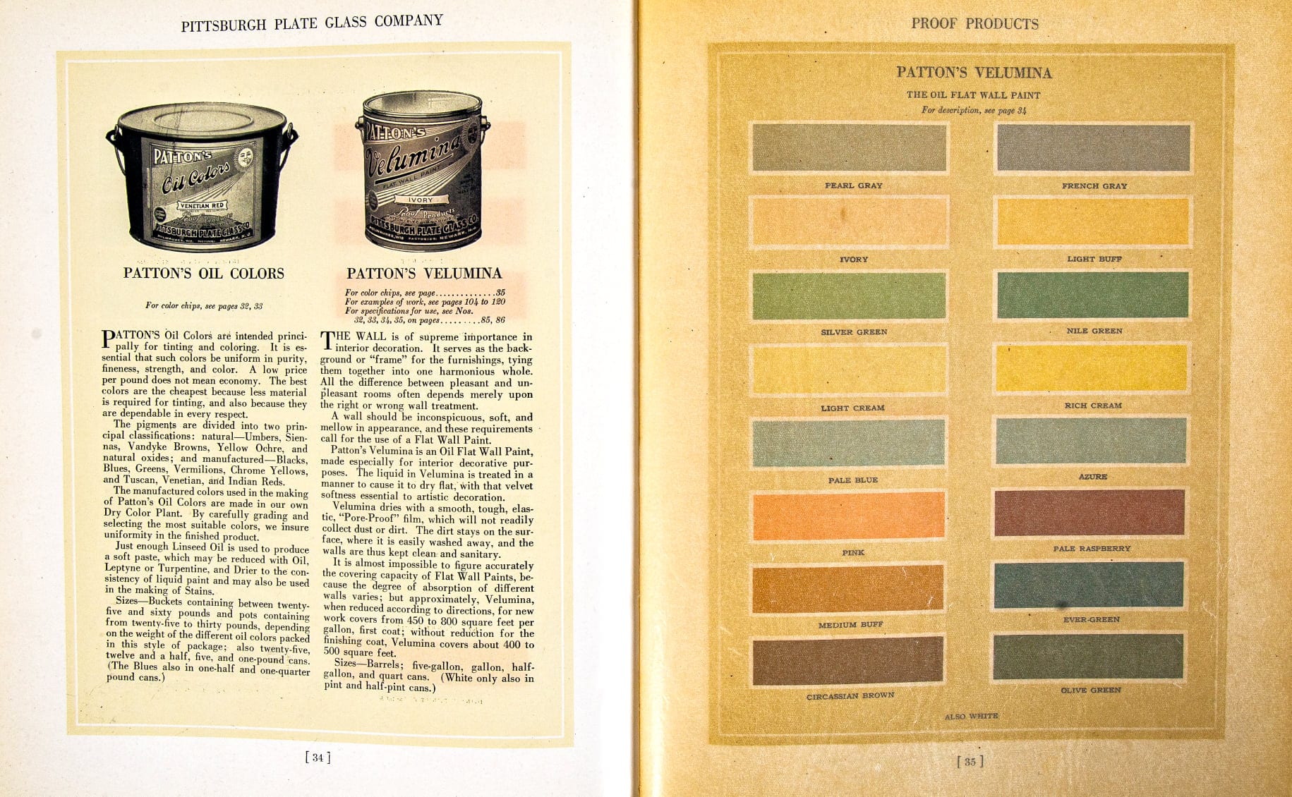rare early 20th century comprehensive and profusely illustrated pittsburgh plate glass company’s “glass paints, varnishes, and brushes: their history manufacture and use” hardbound book and/or catalog featuring an informative glance at the early beginnings of glassworks, paint development and distribution and the formation and establishment of their company, followed by an extensive listing of their product line and custom services.