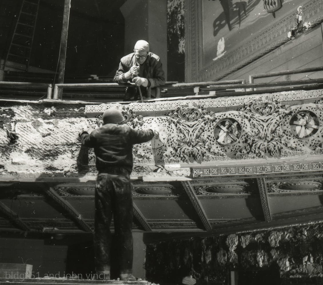 note:the adler & sullivan- designed building – built as the schiller building – was handed a death sentence earlier that year. richard nickel, john vinci, and david norris worked with atlas wrecking to salvage any and all ornament for distribution to interested institutions across the world.
