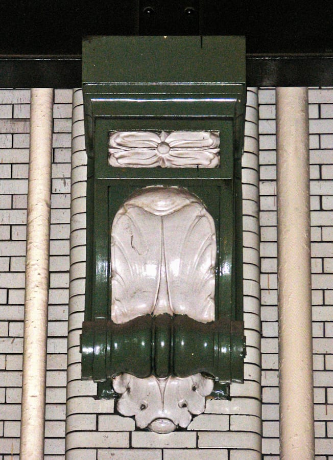 note: in addition to the office, the hospital power house’s surrounding walls was outfitted with white and green slip-glazed brick walls and accentuated with oversized corbels or brackets. the actual “slip” covers and/or gives the brick its color, by fusing and uniting with the body of the brick, thus preventing any degree of transparency that would compromise the integrity of the color applied. it should also be noted that at the time of construction (1917) several commercial structures, large and small, employed the use of enameled bricks in this exact color scheme as a popular treatment for exterior facades. the enameled and/or vitreous bricks were fabricated by the hydraulic press brick company, chicago, ills.