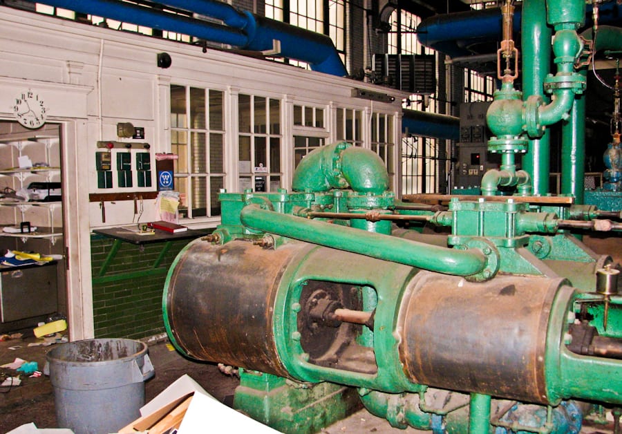 there were several more “odds and ends” that i picked up during my brief stint in the power plant, but underlying the urge to save components, i figured i should photo-document the interior as i found it, before it was quickly picked apart by scrappers, abatement teams, etc., in preparation for demolition. within no time, all asbestos would be cleared from the site and the big machines and torches would dissect and extract each and every component in a blink of an eye. there would be very little for me to photograph in terms of the antiquated equipment, once so delicately cared for and maintained, that ensured the buildings it serviced remained operational for its occupants.