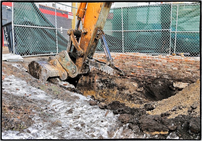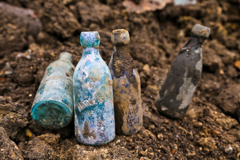 the final excavation phase was at the forefront of my mind. this would entail a very thorough analysis of the land. that morning, as i watched the machine operator open up the earth for me to comb through, i felt as if an entire, buried history lay cramped in pockets of silt and dirt and wood under my feet. i was looking for any additional buried artifacts left behind by the russell family or the generations who called 456 north carpenter street home. i obsessively documented each find, cataloging every scrap, researching every broken shard, every intact bottle, every chip of pottery.