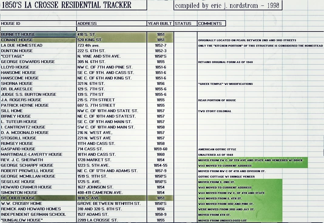 well over a decade ago, when i was still in graduate school pursuing a degree in an unrelated interest, i was maniacally obsessed with any and all extant houses in my hometown that dated from the 1840’s-1850’s. in fact, i drafted a meticulously detailed repository of data about la crosse (wisconsin) houses still standing from that era. my intent was to compile the information into a case study. That was the idea. in this way, my scientific methods bled into the realm of my passion: i would document architecture much the way i generated data, ran statistics, and interpreted my findings in the laboratory. i could bring a rigorous science training to exploring the artifacts, methodology and materials of architecture.