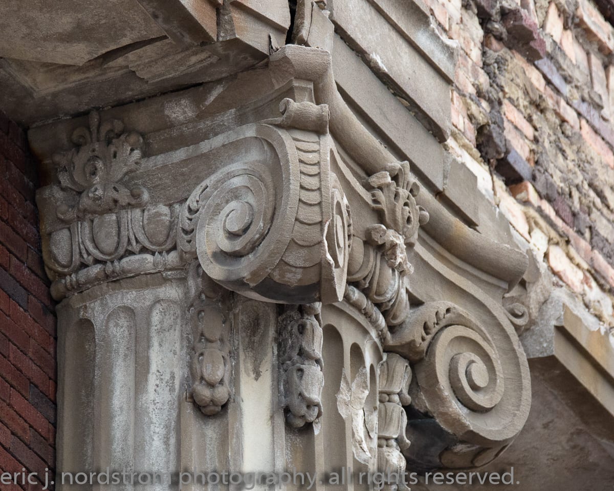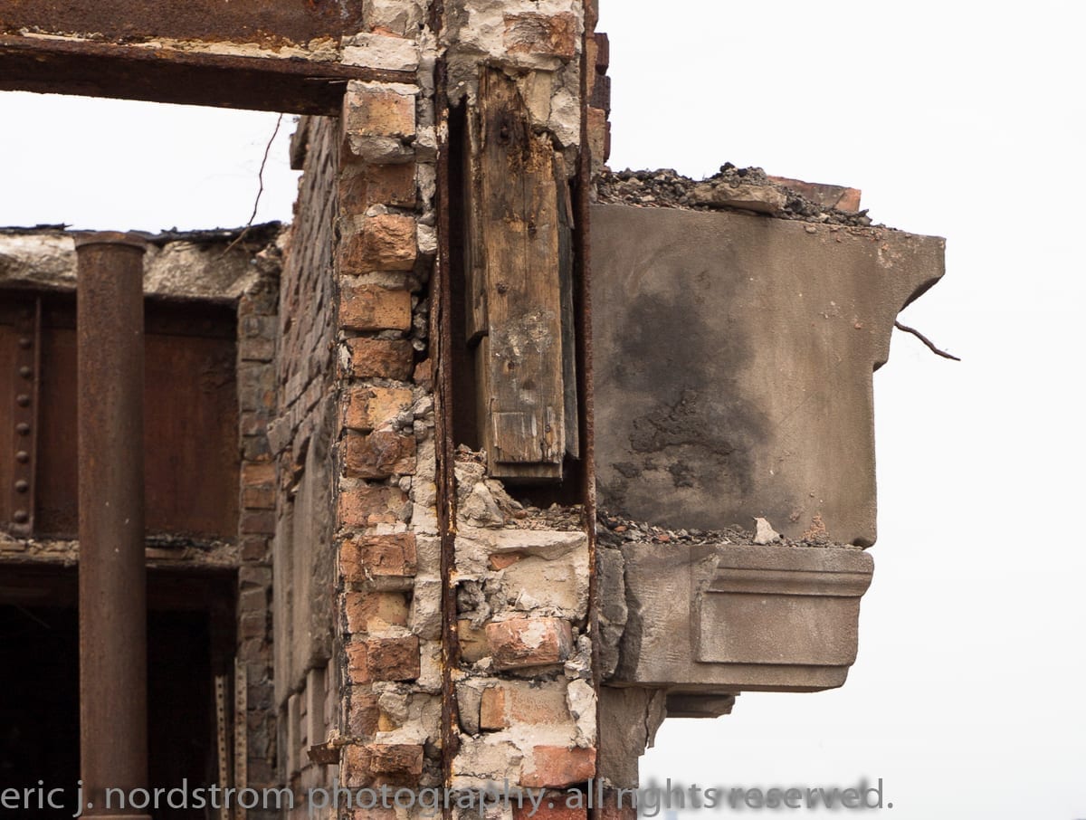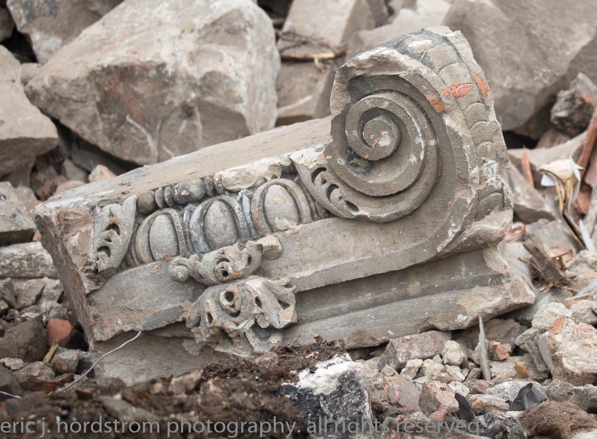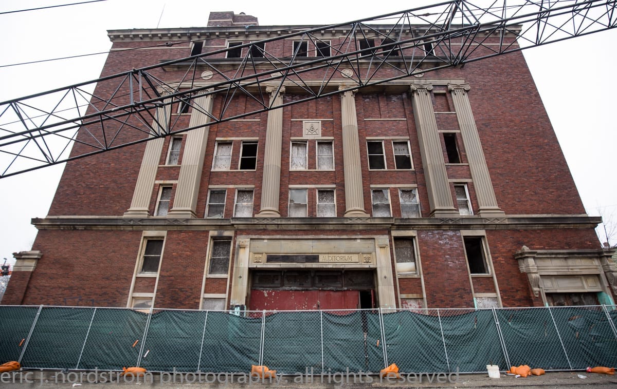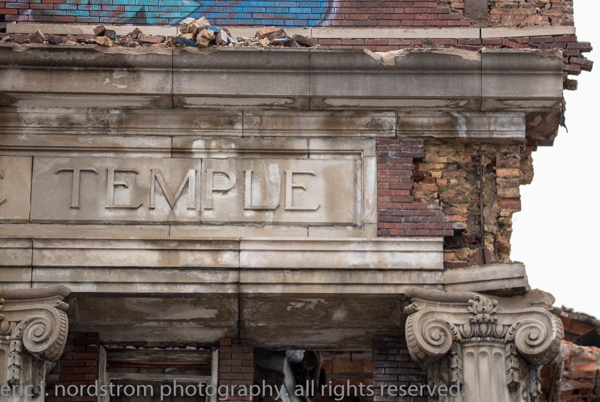 standing in front of this hulk of a building, the green demo fence line dwarfed by the sheer scale of this towering monument to the history of freemasonry in chicago, I felt overwhelmed by the task at hand.  i wondered how it was possible that despite a collective interest and acknowledgement of this building’s significance, i was the only one here to document its death.