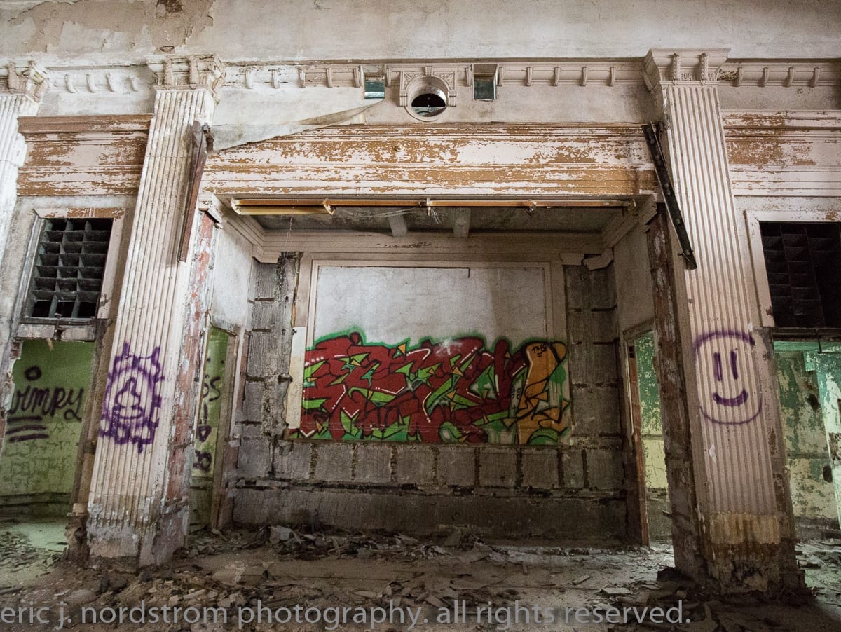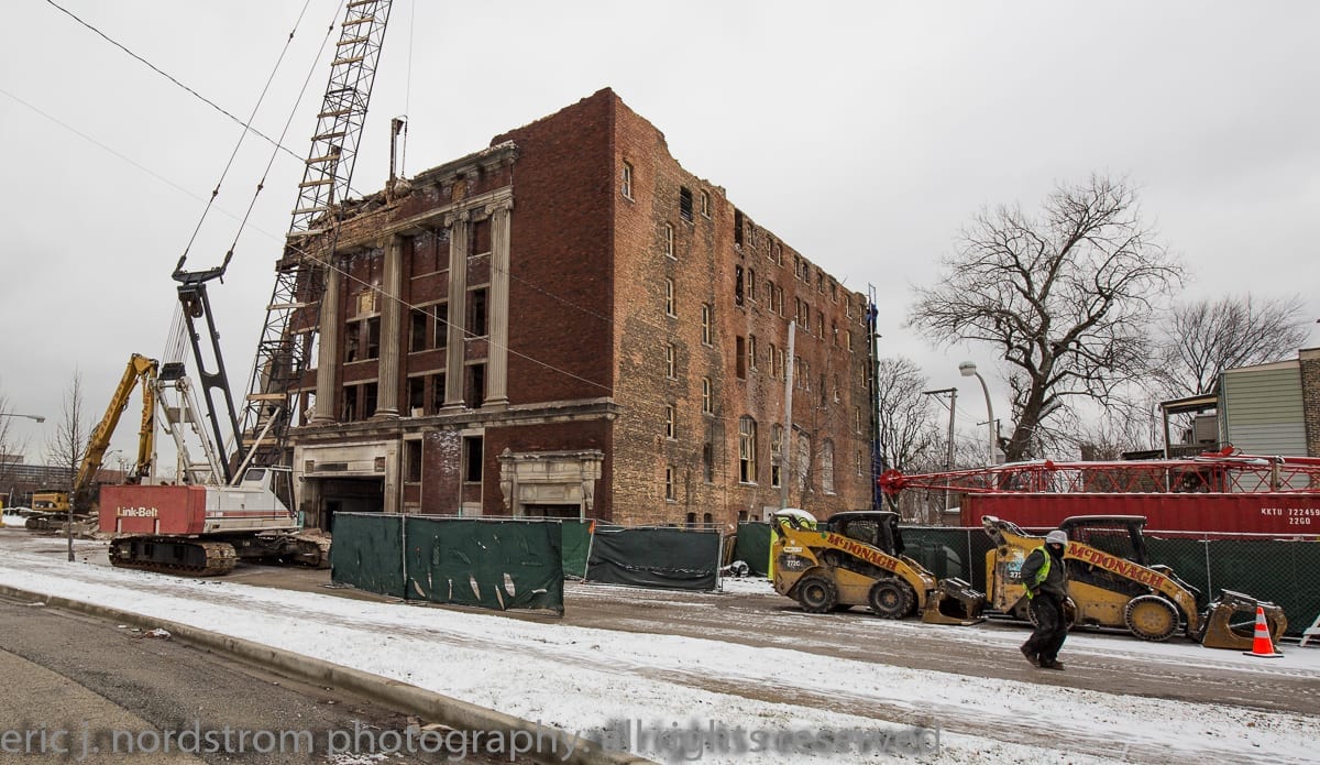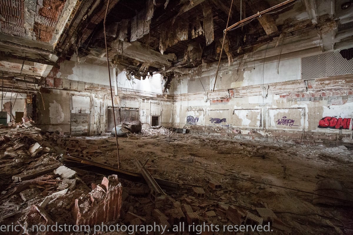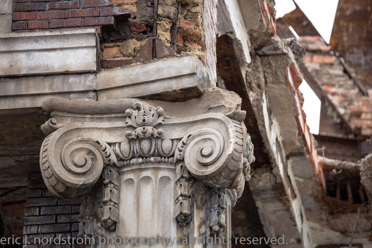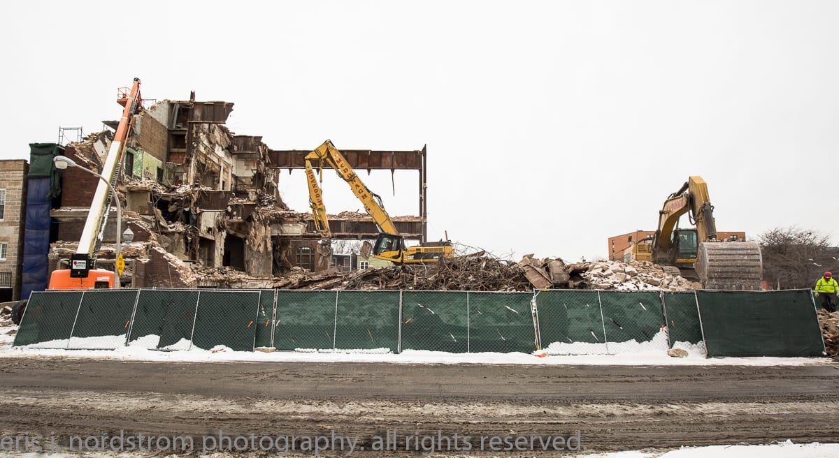 standing in front of this hulk of a building, the green demo fence line dwarfed by the sheer scale of this towering monument to the history of freemasonry in chicago, I felt overwhelmed by the task at hand.  i wondered how it was possible that despite a collective interest and acknowledgement of this building’s significance, i was the only one here to document its death.
