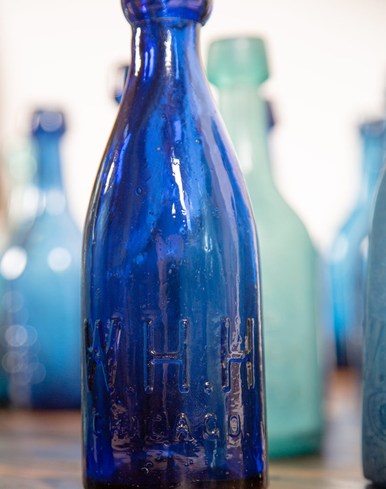 i’ve finally whittled down my collection of completely intact chicago-based mid-19th century soda bottles with embossed lettering and iron-pontiled bases.