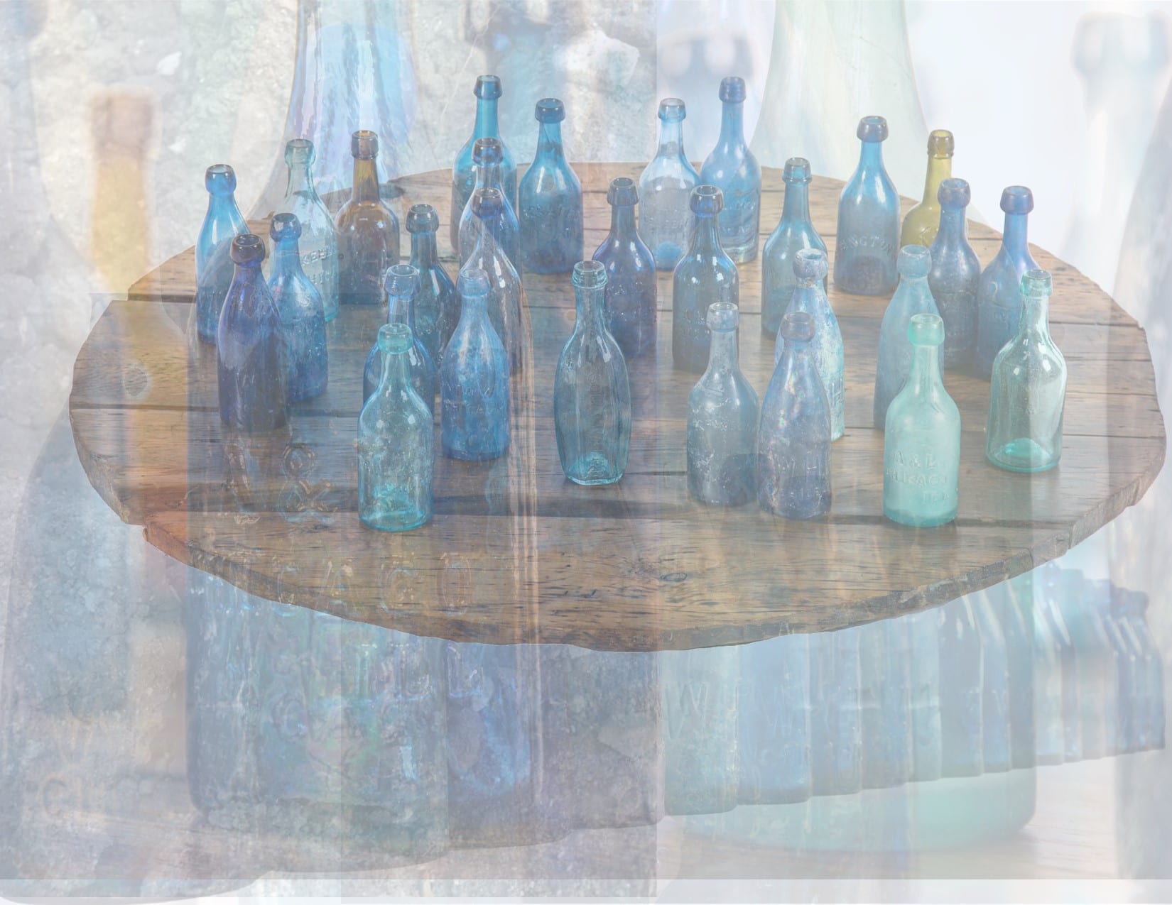 other bottles were photographed in my studio on a reconstructed 19th century pine wood circular-shaped privy pit floor discovered behind a pre-fire single-story cottage located on superior street in west town.