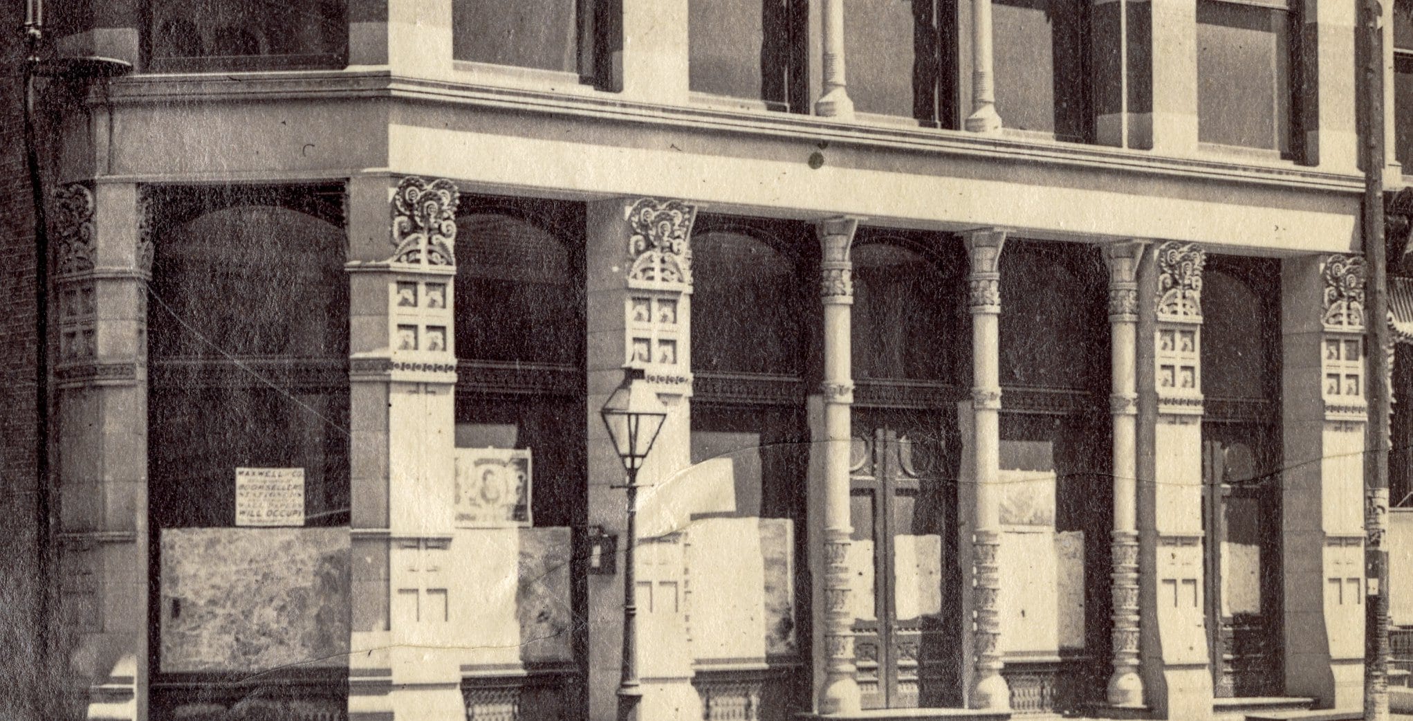 after scanning at high resolution, i was pleased to see the carved sandstone panels and ornamental cast iron columns in such great detail. prior images i’ve studied never provided such clarity.