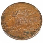 after visiting the museum i wanted something similar that i could add to my “great chicago fire collection”. at this point, my collection only consists of stereoview cards of the wreckage, a bronze medallion fabricated from the metal used to cast the city hall’s large bell that was badly damaged during the fire, a certificate from the chicago public board of works announcing the sale of the court house bell, and perhaps most important of all, a largely intact cast zinc figural gutter spout (likely from a prominent residence) found in the burnt district.