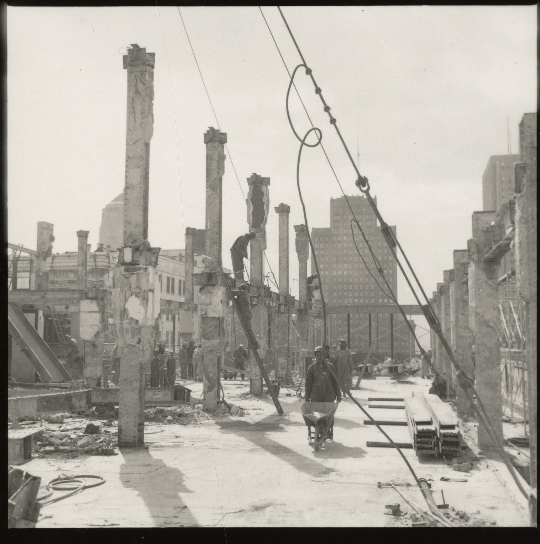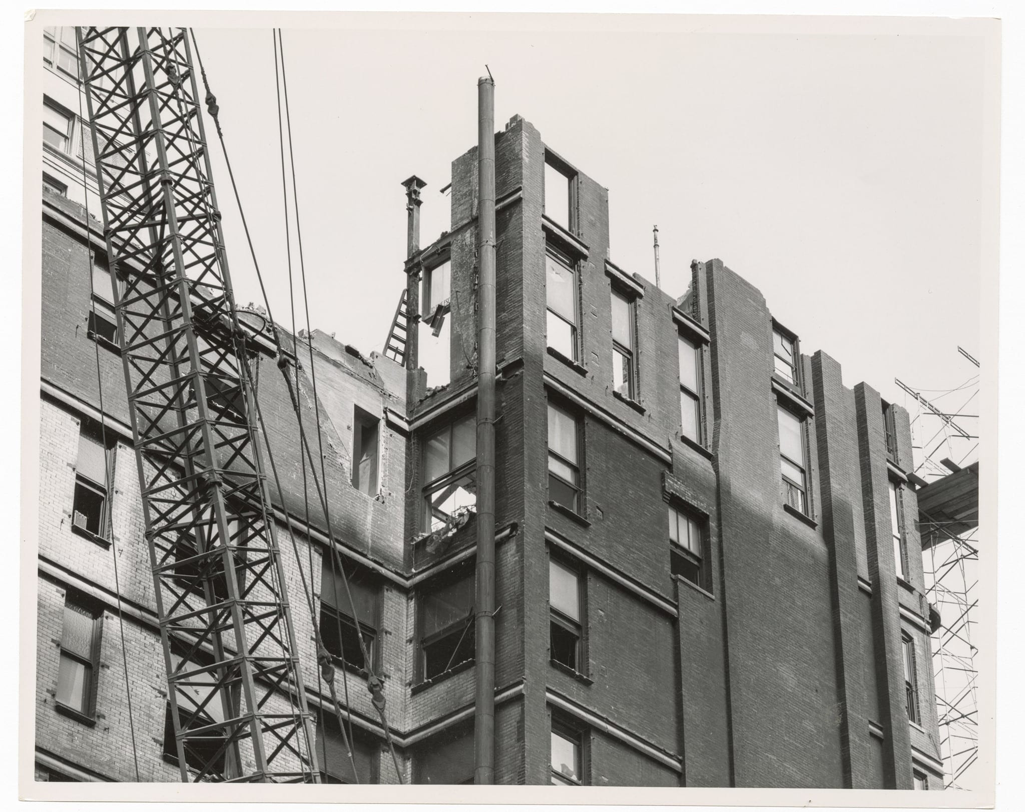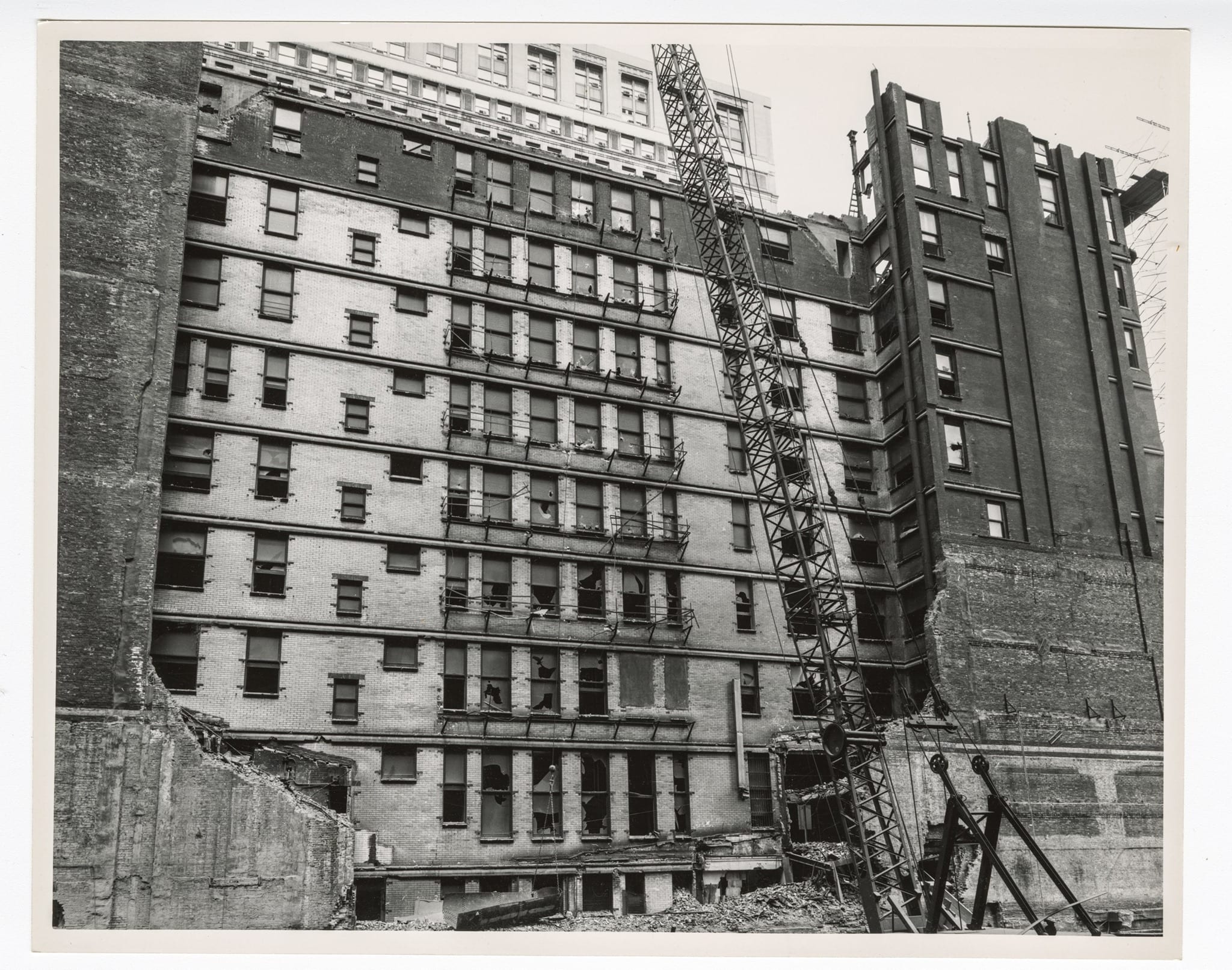 recently digitized richard nickel images of burnham and root’s phenix building (1887) during its demolition by midwest wrecking in 1957. i was pleasantly surprised to run across both contact sheets and 8 x 10 images of the building’s demolition since very few images of chicago school commercial buildings wrecked in the 1950’s exist.