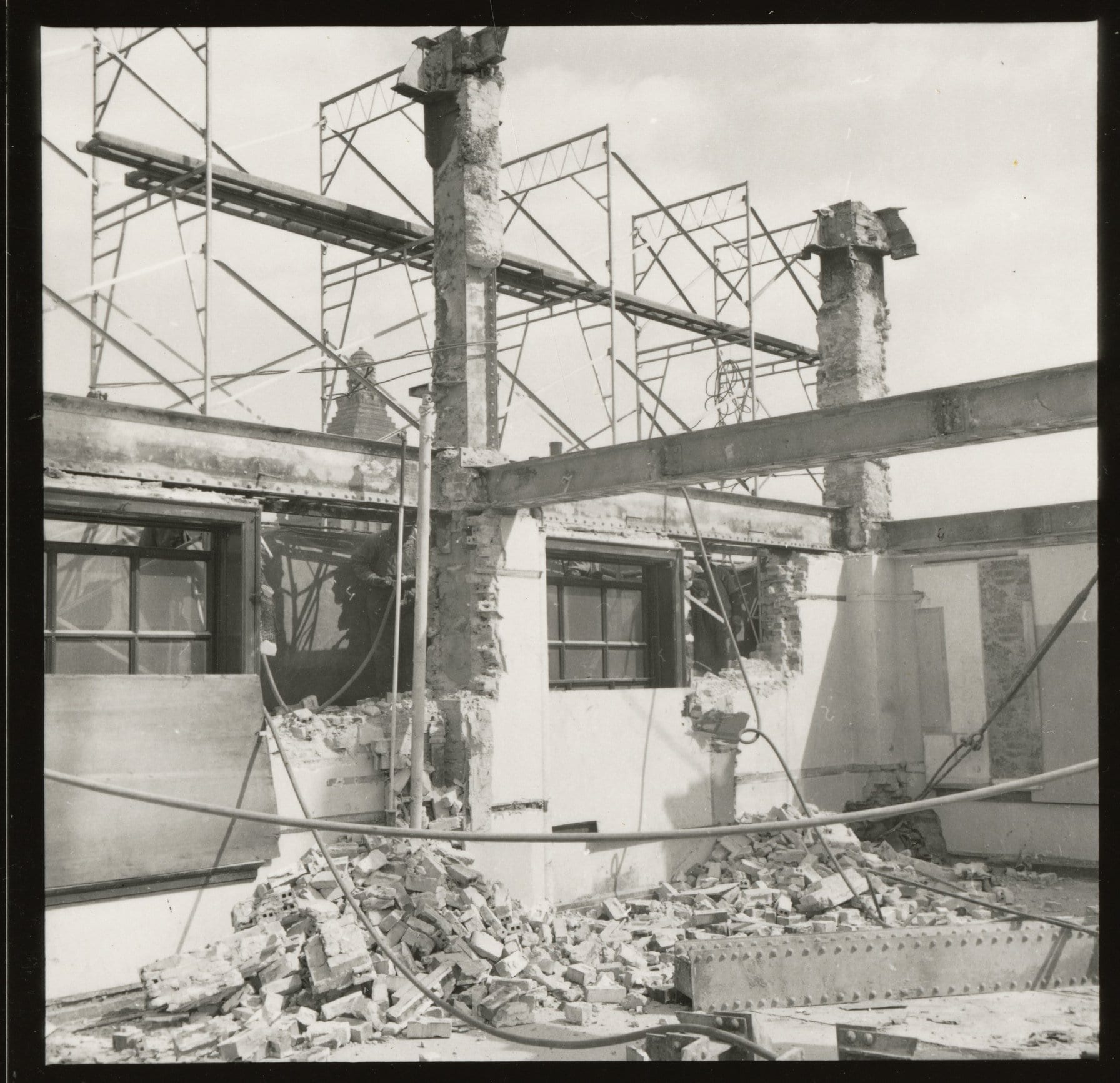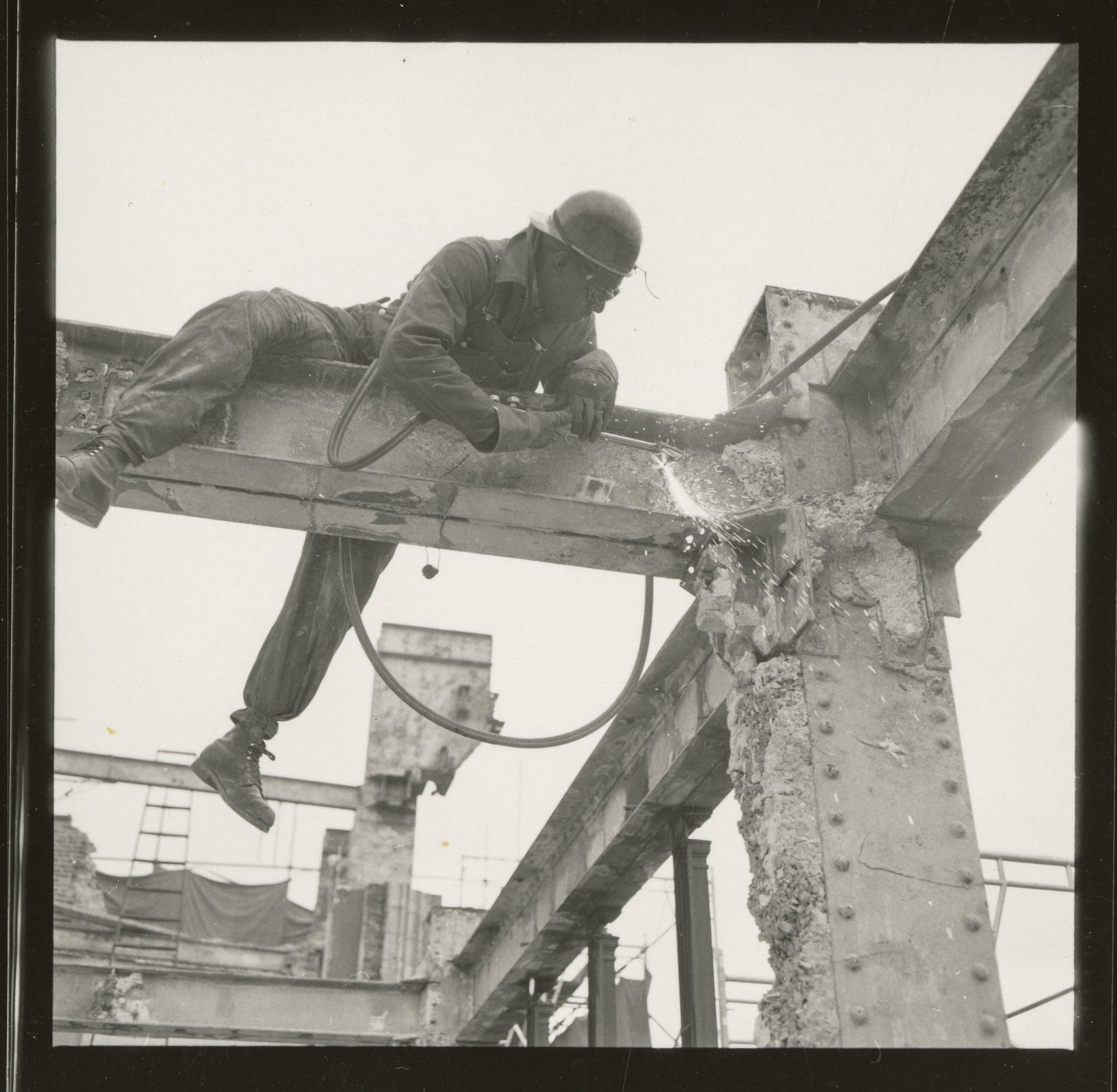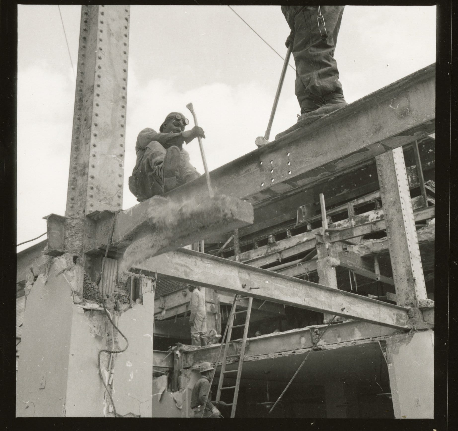 recently digitized richard nickel images of burnham and root’s phenix building (1887) during its demolition by midwest wrecking in 1957. i was pleasantly surprised to run across both contact sheets and 8 x 10 images of the building’s demolition since very few images of chicago school commercial buildings wrecked in the 1950’s exist.
