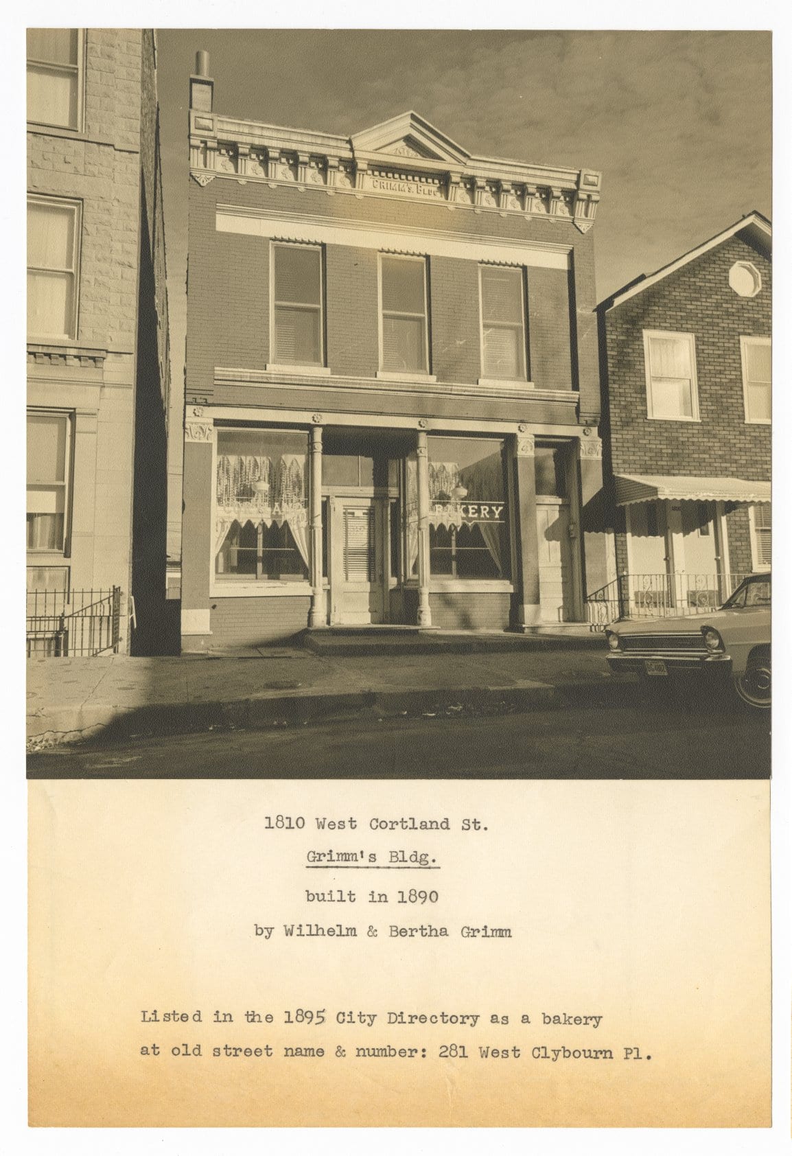 architectural photographer richard nickel’s “polish palazzo” was built as a two-story unpretentious victorian era masonry building for wilhelm grimm in 1889. grimm operated his bakery (including brick ovens located behind the building) out of the first floor storefront with the second floor being his living quarters and rental space. the building remained largely intact – both exterior and interior – when nickel purchased the building in 1969, which by that time was known as the cortland bakery.
