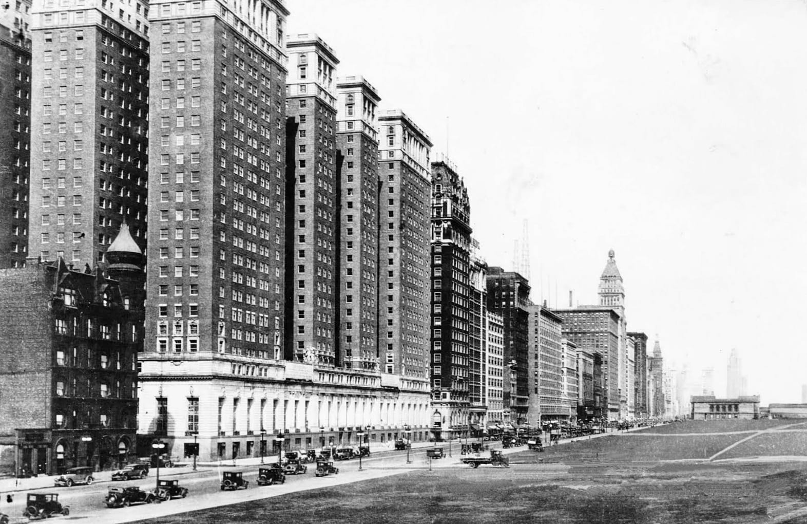 the design of richard e. schmidt was described as a tower — the highest structure in the country besides the washington monument and philadelphia’s city hall — surrounded on three sides by an office building designed for the occupancy of one firm only. the tower was naturally suggested from the fact that the building fronted toward the lake, and that the view in that direction would, in all probability, never be obstructed. the ordinary practical difficulties of construction for such a high tower were augmented by the comparatively narrow frontage on michigan avenue, only eighty-six feet.