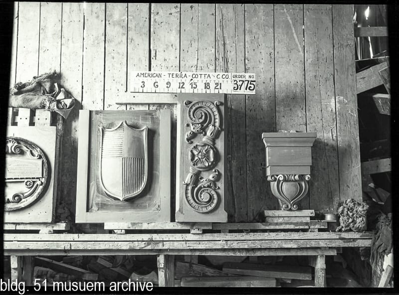 the terra cotta ornament was executed by the american terra cotta company. discovering old images of the theater’s ornament in the factory’s modeling room was exciting. to this day i haven’t seen such a well-executed and vibrantly colored sprayed glazed finish.