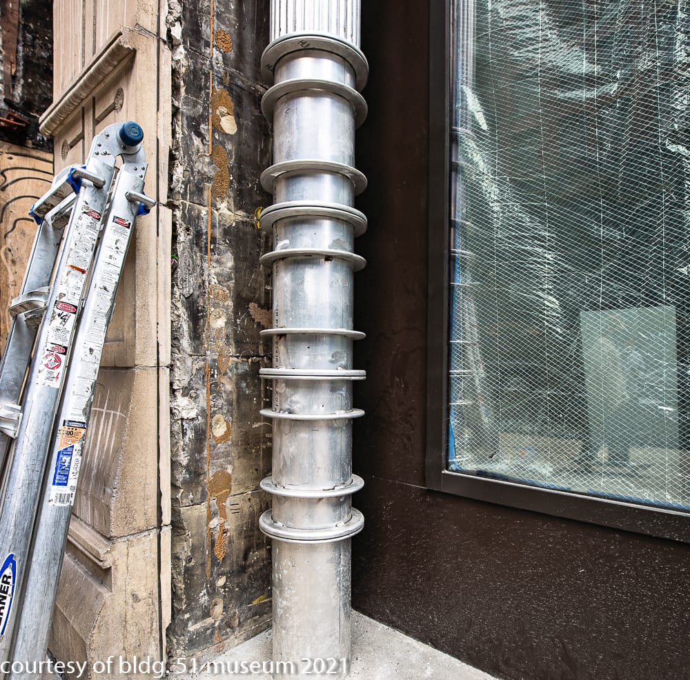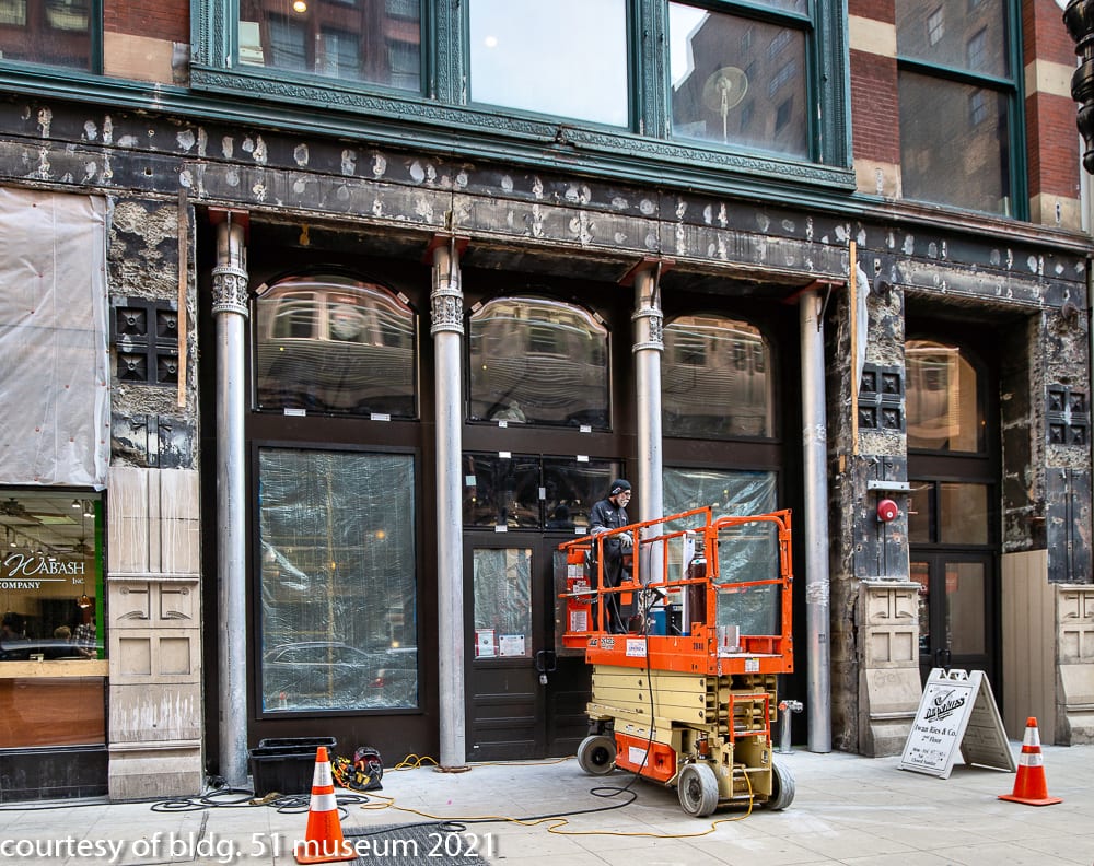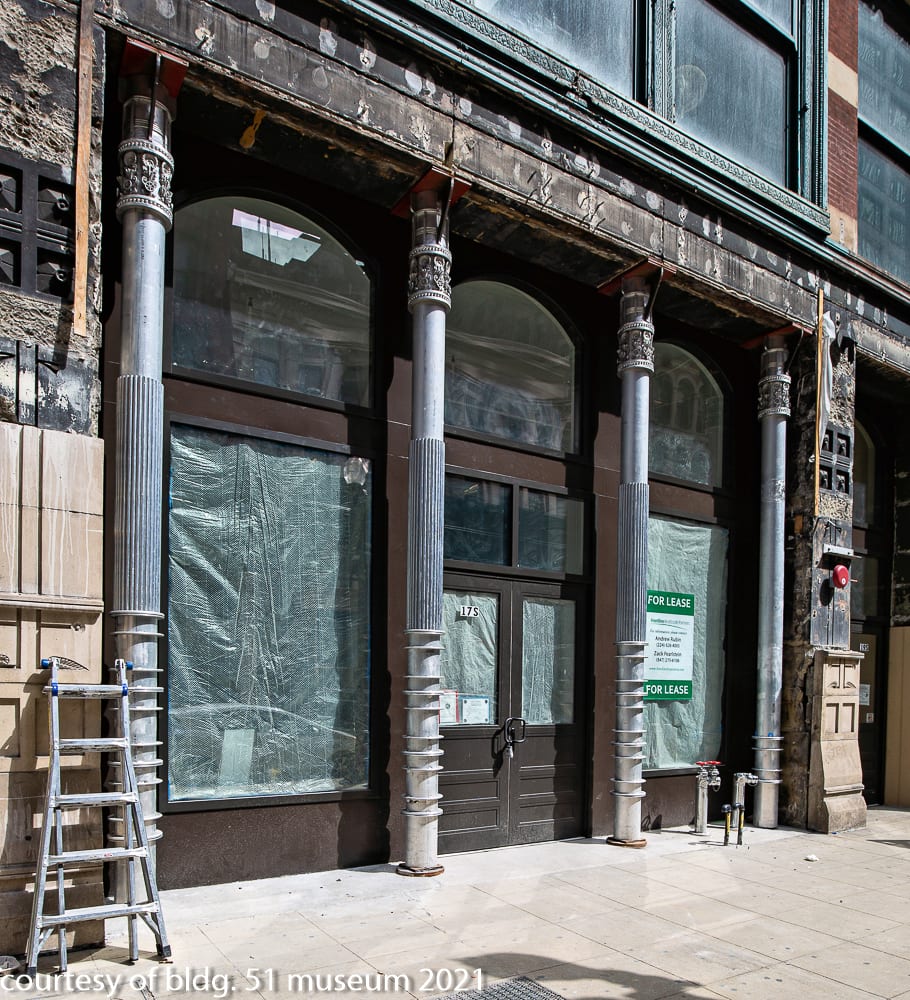 latest images documenting the reconstruction of the four sullivan-designed exterior load-bearing steel columns adorning the s.a. maxwell building’s (adler and sullivan, 1881) storefront. with most of the interior alterations and/or restoration completed, focus has shifted again to the building’s façade, where recreation of the ornamental cast iron columns and berlin sandstone piers is well underway.