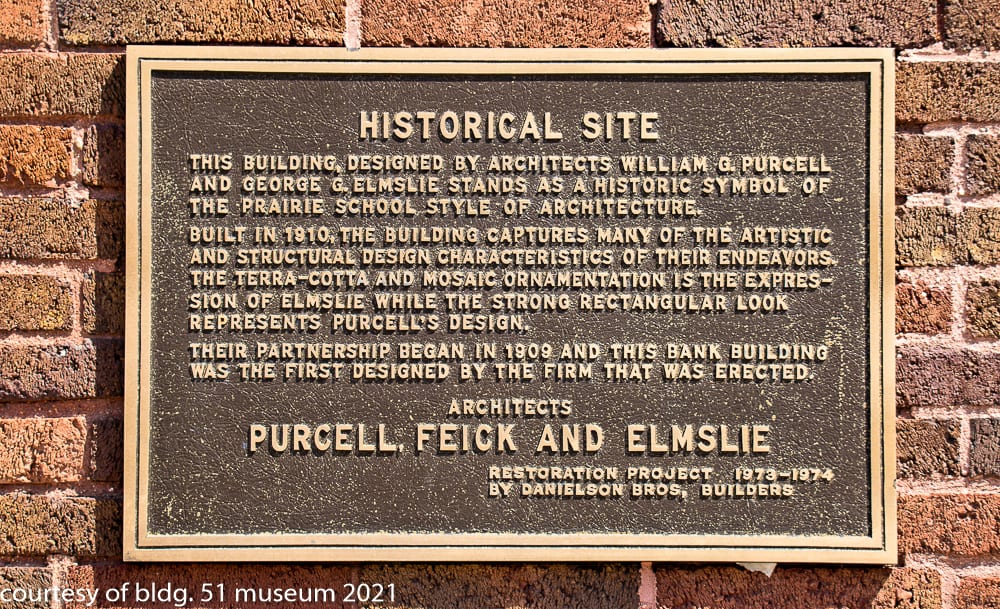 11 May photographic documentation of purcell and elmslie’s grand meadow’s exchange state bank (1910)